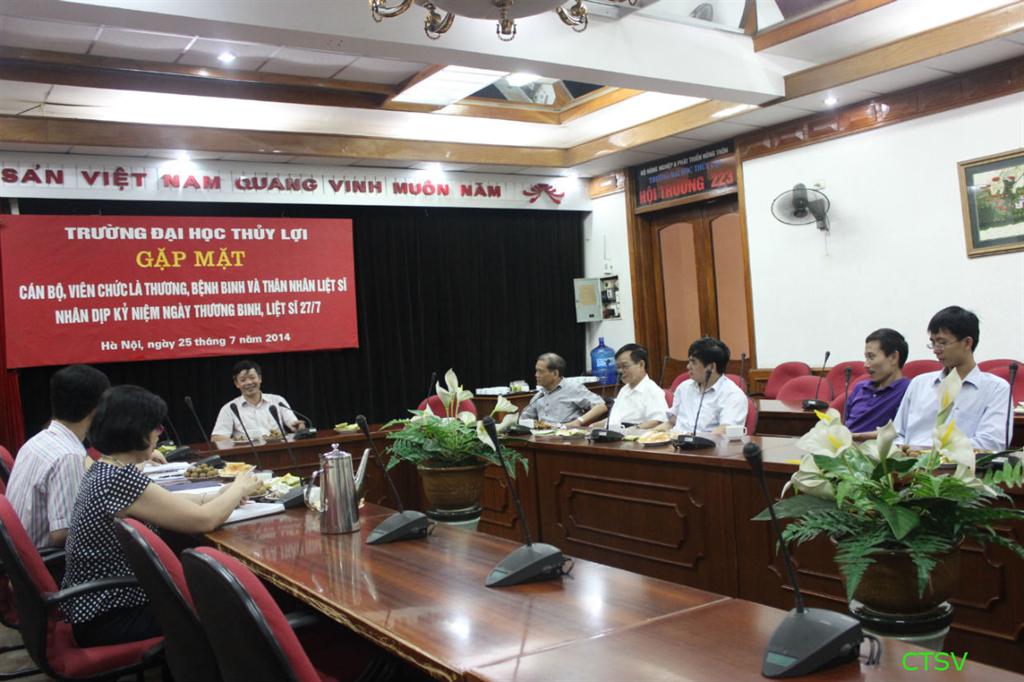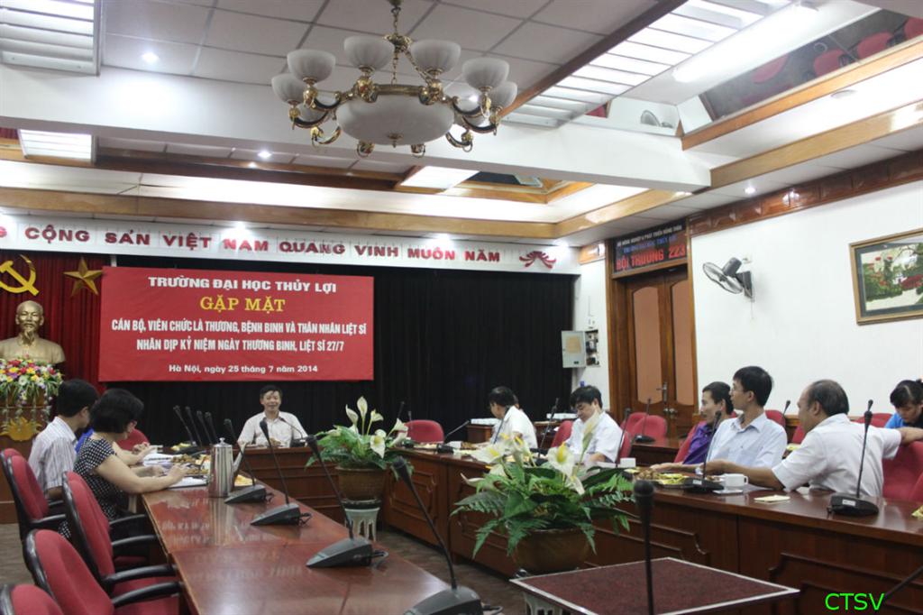 Hòa chung không khí của cả nước, tưởng nhớ và tỏ lòng biết ơn đến với các thế hệ bộ đội Cụ Hồ đã chiến đấu hết mình vì hòa bình, độc lập tự do của đất nước. Sáng ngày 25/7/2014, tại hội trường 223 A1, trường Đại học Thủy Lợi đã tổ chức “Gặp mặt cán bộ viên chức là thương, bệnh binh và thân nhân liệt sĩ nhân dịp kỉ niệm ngày thương binh liệt sĩ 27/7”.