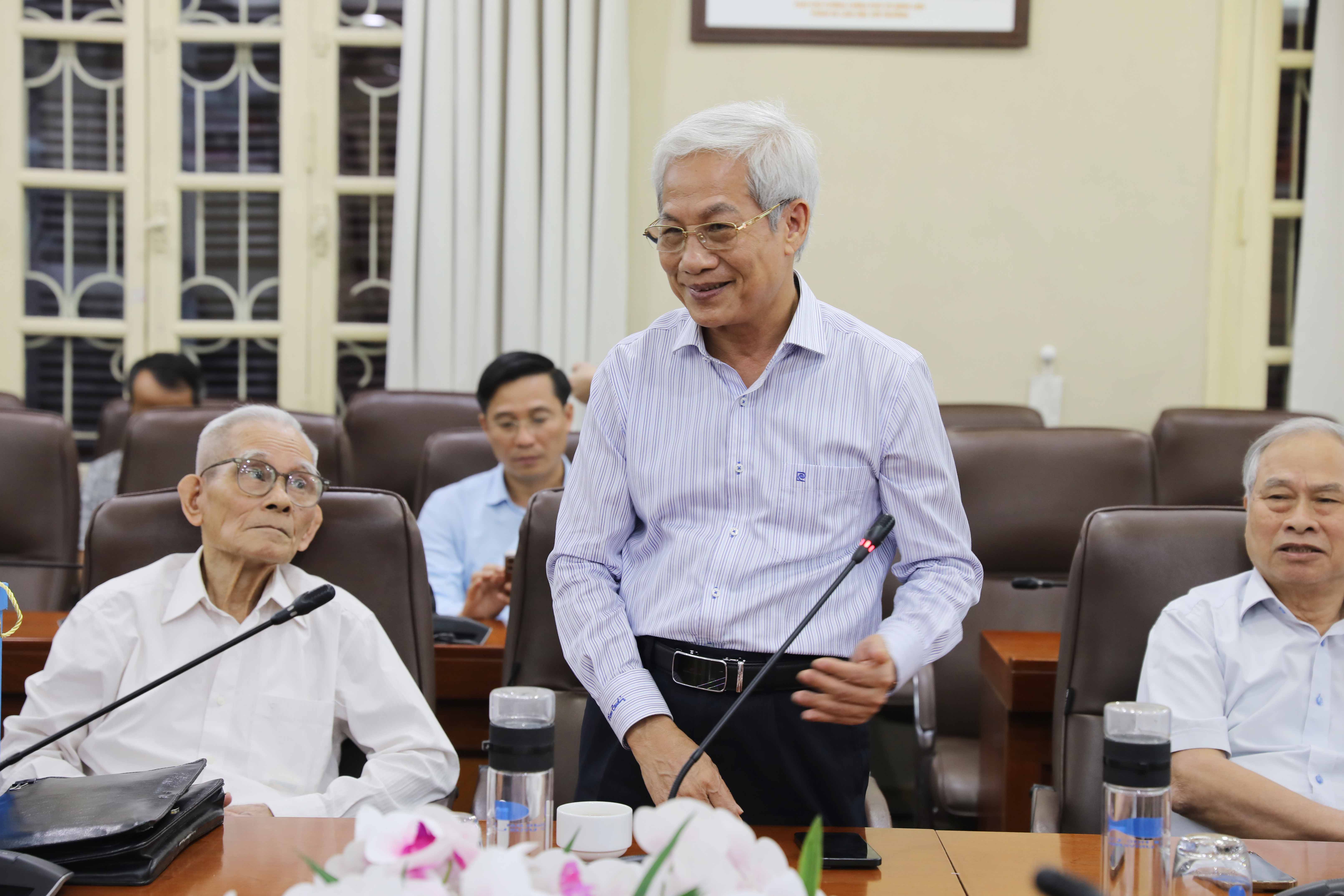 Trong không khí chân tình và ấm áp, thay mặt Đảng ủy, Ban Giám hiệu, GS.TS Trịnh Minh Thụ đã gửi lời chúc sức khỏe, hạnh phúc đến các đồng chí nguyên Lãnh đạo nhà trường qua các thời kỳ và các thầy Cựu giảng viên Khóa I. Hiệu trưởng mong mỏi được các thầy tiếp tục quan tâm, đóng góp ý kiến, chia sẻ những tri thức, kinh nghiệm quý báu và tâm huyết của mình góp phần đưa Nhà trường ngày càng phát triển vững mạnh.