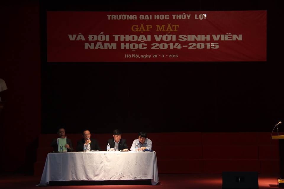 Như một hoạt động thường niên, hằng năm, trường Đại học Thủy lợi luôn tổ chức những buổi gặp mặt và đối thoại trực tiếp với sinh viên, nhằm tạo ra môi trường thân thiện, cởi mở giúp các bạn sinh viên có thể trao đổi, bày tỏ tâm tư, nguyện vọng và những đề đạt của mình đối với nhà trường, nhằm mục đích xây dựng môi trường học tập tốt nhất để các bạn có thể phát triển tối đa những năng lực của bản thân, không ngừng nâng cao chất lượng giảng dạy. Với mục tiêu đó, sáng ngày 28/3/2015, tại hội trường T45, trường Đại học Thủy lợi đã tổ chức buổi “Gặp mặt và đối thoại với sinh viên năm học 2014-2015”. Đến dự có sự hiện diện của GS.TS Trịnh Minh Thụ- Phó Hiệu trưởng nhà trường, cùng đại diện Công đoàn, Đoàn thanh niên, các phòng khoa, ban, trung tâm các thầy cô giáo và sự có mặt của đông đảo các bạn sinh viên đại diện cho các lớp đang học tập tại trường.