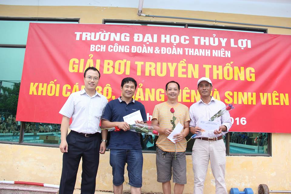 * Nội dung 50m ếch nam Giải nhất: Đinh Văn Niêng 54V- Khoa Thủy văn và Tài nguyên nước; Giải nhì: Vũ Phan Nguyên Khánh 53TH1- Khoa CNTT Giải ba: Hồ Văn Hải 55CTL1- Khoa Công trình Giải KK: Ngô Kim Thái 55CTL3- Khoa Công trình.