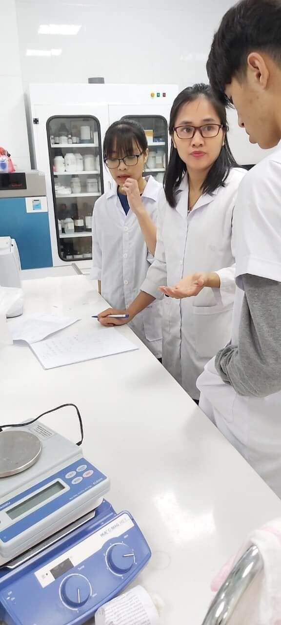 TS. Cao Thị Huệ, Bộ môn công nghệ sinh học hướng dẫn các em học sinh làm thí nghiệm