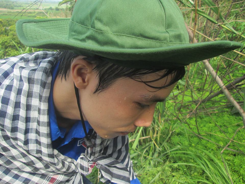 Những giọt mồ hôi lăn trên mặt của chàng trai thư sinh này tỏa sáng hình ảnh sinh viên tình nguyện Đại học Thủy Lợi