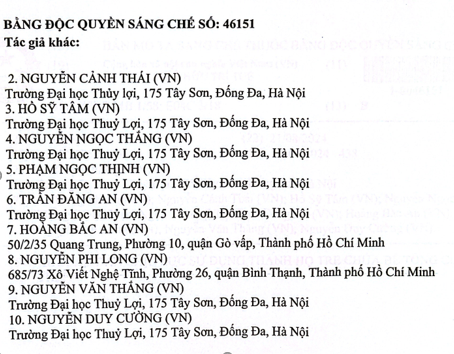 Giảng viên Trường Đại học Thủy lợi nhận 02 Bằng Độc quyền sáng chế