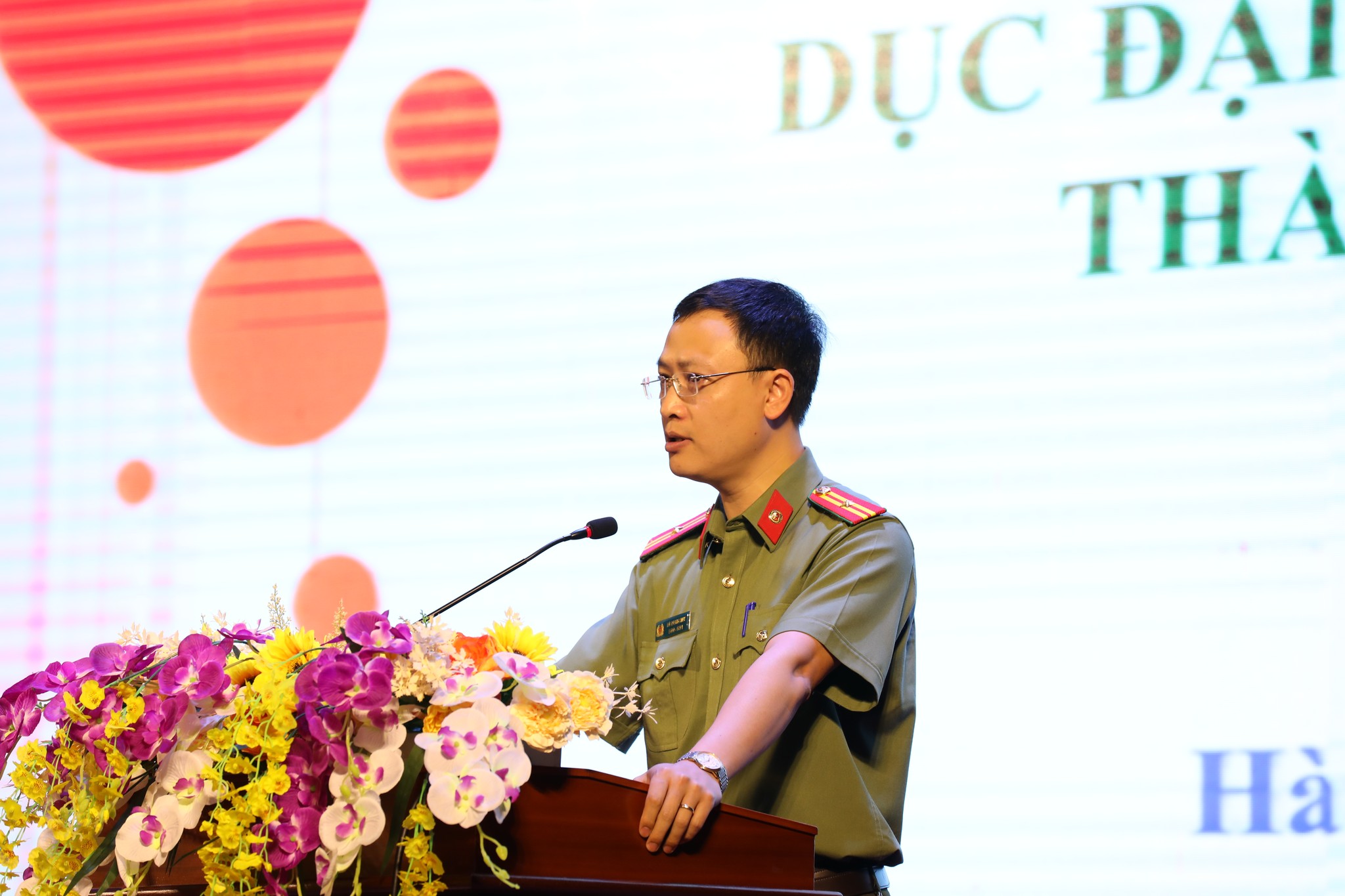 Thiếu tá Hà Quang Huy, cán bộ Phòng An ninh chính trị nội bộ PA03, Công an Thành phố Hà Nội – báo cáo viên của Hội nghị