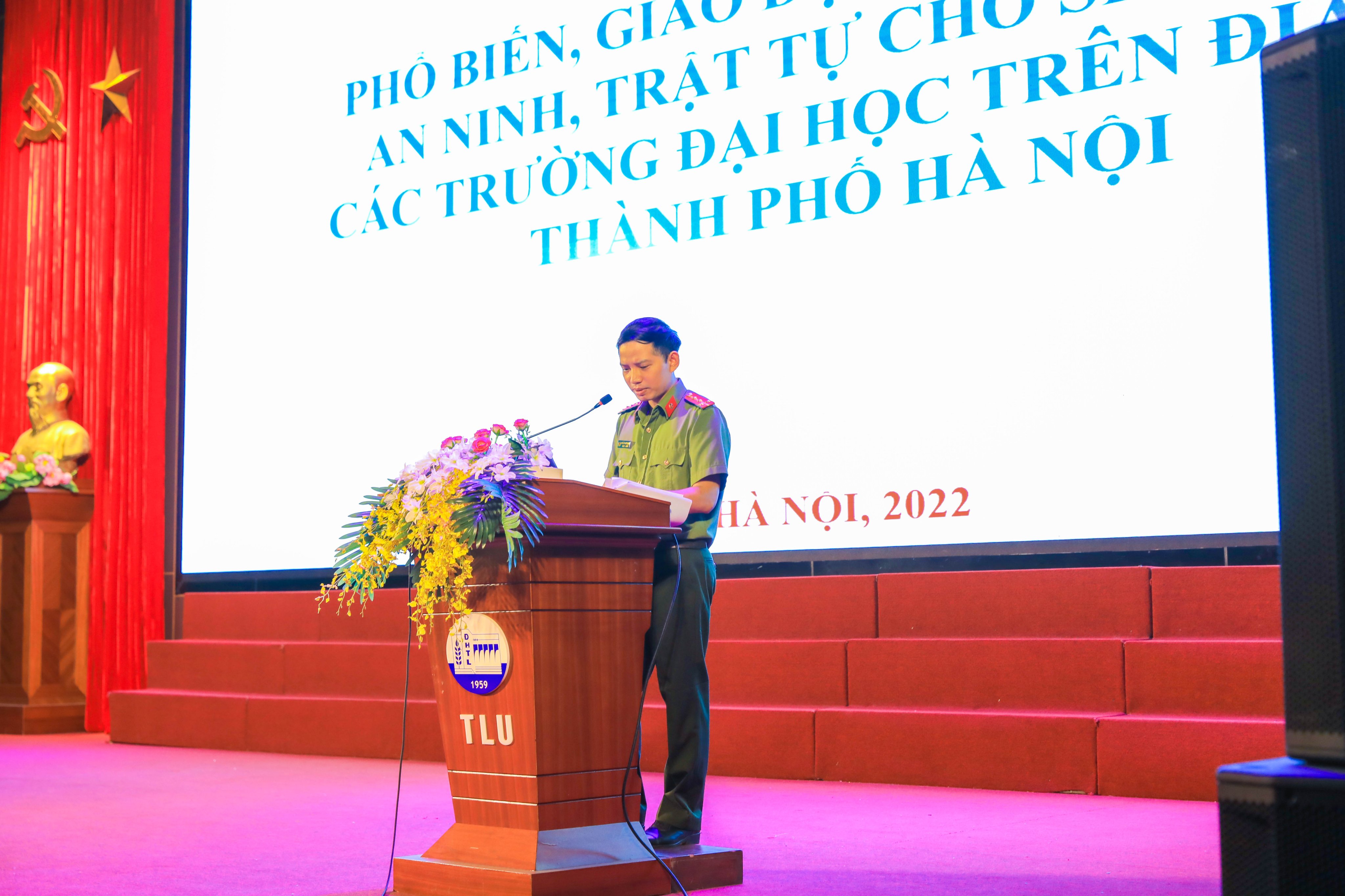Tại hội nghị, Đại úy Nguyễn Văn Trọng – Cán bộ phòng PA03 Công an thành phố Hà Nội đã phổ biến, giáo dục pháp luật đến sinh viên Nhà trường về tình hình an ninh chính trị, trật tự an toàn trên địa bàn Thủ đô. Đồng chí nêu rõ: Trường Đại học Thủy lợi và chính các bạn sinh viên cần lưu ý, cảnh giác đối với những vấn đề liên quan trực tiếp đến đối tượng sinh viên như: không tham gia các hoạt động hội nhóm, câu lạc bộ tổ chức bất hợp pháp, trái pháp luật; lên án các hành vi như học hộ, thi hộ, làm giả giấy tờ, văn bằng chứng chỉ… trong học tập và thi cử. Đồng thời, phát hiện và tố giác các đối tượng sử dụng kiến thức khoa học để vi phạm pháp luật hoặc sử dụng trình độ công nghệ thông tin để tấn công mạng, đăng tải các thông tin sai sự thật, trái với chủ trương, chính sách của Đảng, pháp luật của Nhà nước trên không gian mạng…
