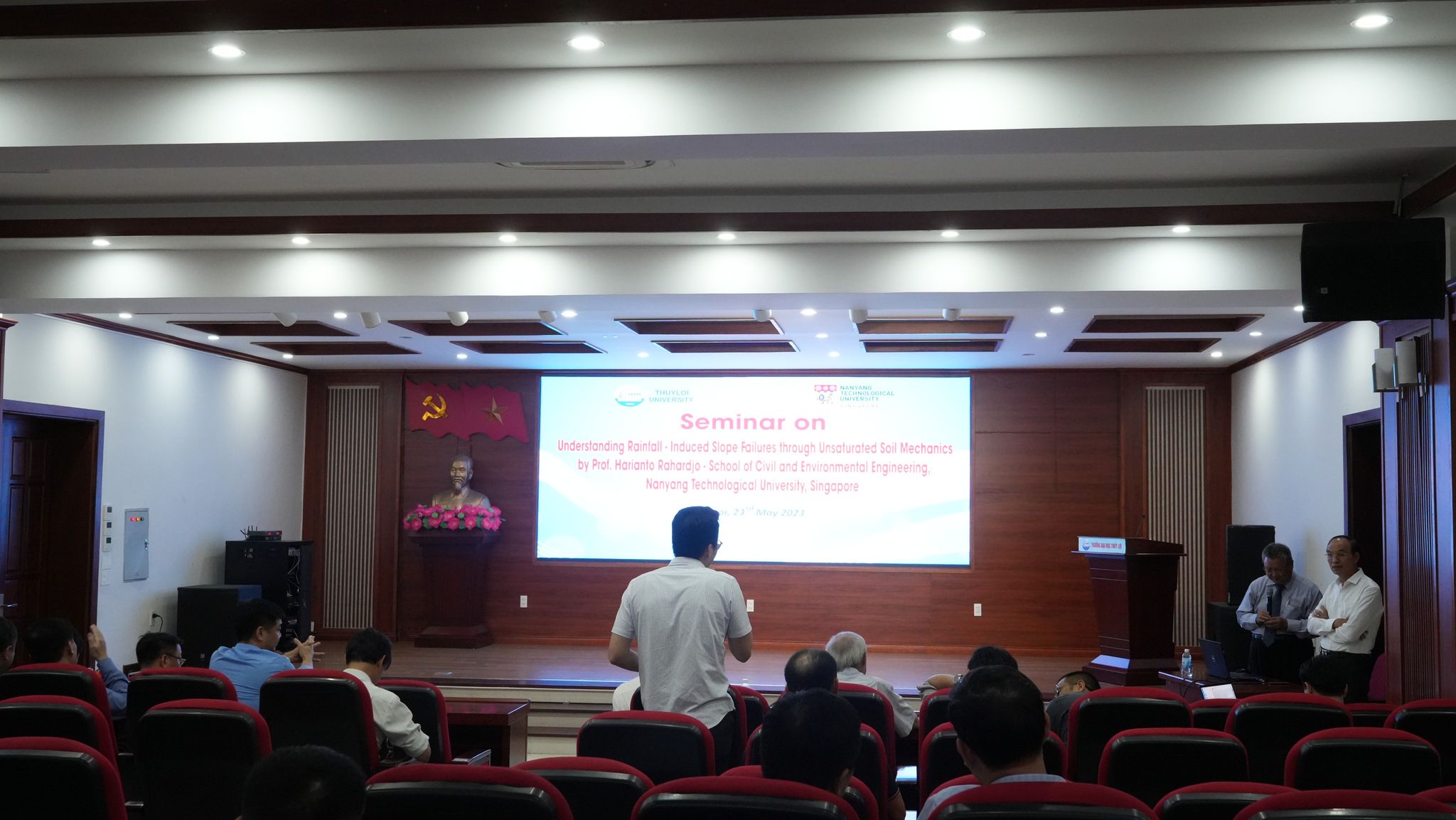 Trong hơn 02 giờ đồng hồ thuyết trình và trao đổi học thuật, Giáo sư Harianto Rahardjo đã trình bày về lý thuyết, cơ sở khoa học và thực tiễn cũng như ứng dụng cơ chế đất không bão hòa để giải quyết các bài toàn cụ thể về phòng chống thiên tai sạt, trượt, dòng chảy gây lũ tại một số khu vực ở Singapore và một số quốc gia. Đồng thời, giới thiệu phương pháp luận, các mô hình tính toán và kiểm định cũng như giới thiệu một số giải pháp tiên tiến để phòng, chống thiên tai cho các khu vực dễ bị rủi ro do ảnh hưởng của cơ chế đất không bão hòa.
