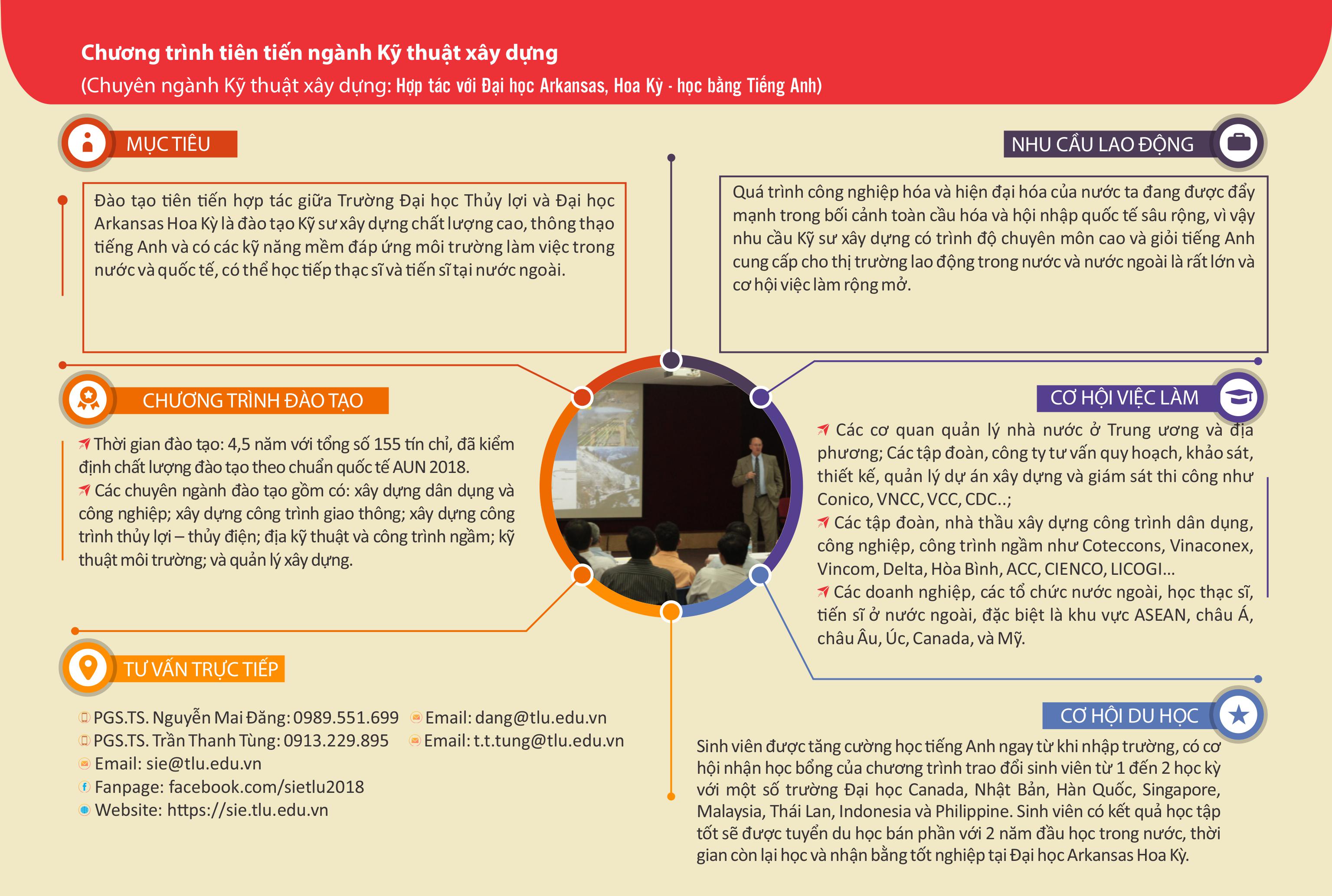 (**) Chương trình gồm 2 chuyên ngành: Kỹ thuật xây dựng hợp tác với Đại học Arkansas – Hoa Kỳ và Kỹ thuật tài nguyên nước hợp tác với Đại học Bang Colorado – Hoa Kỳ.