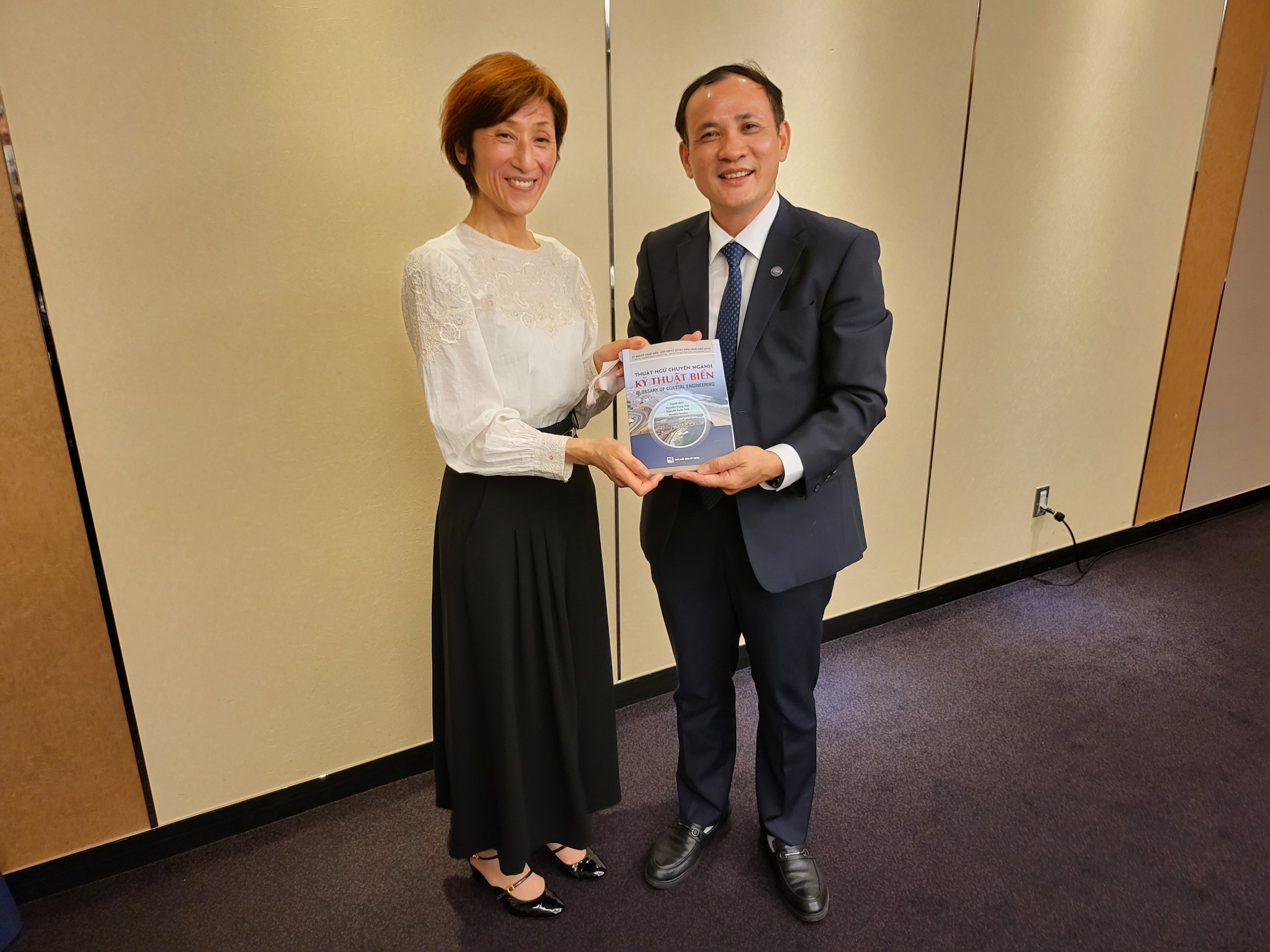 GS.TS Nguyễn Trung Việt tặng nhà khoa học người Nhật cuốn sách “Thuật ngữ chuyên ngành Kỹ thuật Biển” do ông và các cộng sự biên dịch