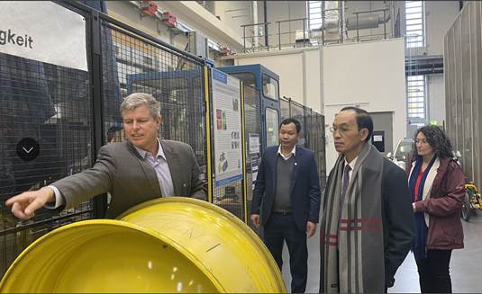 GS. Mathias Kroeger- Viện trưởng Viện thiết kế máy và công nghệ Cơ khí giới thiệu trang thiết bị nghiên cứu tại phòng thí nghiệm
