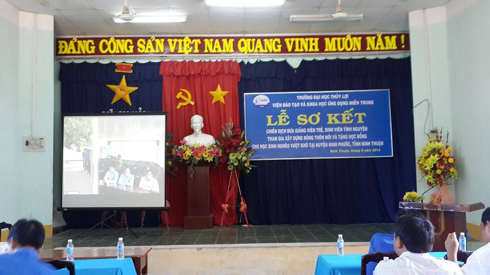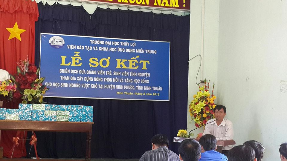 Sáng ngày 11/08/2015, tại Hội trường Ủy Ban Nhân dân xã An Hải, huyện Ninh Phước, Trường Đại học Thủy lợi và Tỉnh Đoàn Ninh Thuận đã phối hợp tổ chức buổi sơ kết “Chiến dịch đưa giảng viên trẻ và sinh viên tình nguyện tham gia xây dựng nông thôn mới năm 2015” tại huyện Ninh Phước, tỉnh Ninh Thuận.