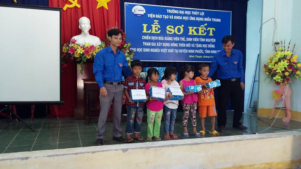 Tại buổi sơ kết, Viện Đào tạo và Khoa học ứng dụng Miền trung và đoàn giảng viên trẻ, sinh viên tình nguyện tham gia xây dựng nông thôn mới đã tiến hành trao 40 phần quà cho các học sinh nghèo vượt khó trên địa bàn 08 xã thuộc huyện Ninh Phước.
