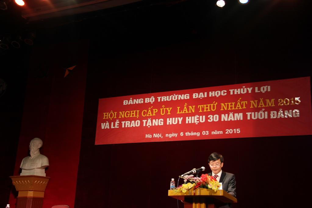 Chiều ngày 06/03/2015, dưới sự chủ trì của GS.TS Nguyễn Quang Kim – Bí thư Đảng ủy, Hiệu trưởng trường ĐH Thủy Lợi, hội nghị cấp ủy lần thứ nhất năm 2015 và lễ trao tặng huy hiệu 30 năm tuổi Đảng đã diễn ra tại hội trường T45 (tại cơ sở Hà Nội). Đảng ủy Cơ sở 2 – Đại học Thủy Lợi đã tham gia trực tuyến hội nghị tại phòng 202/GĐ.