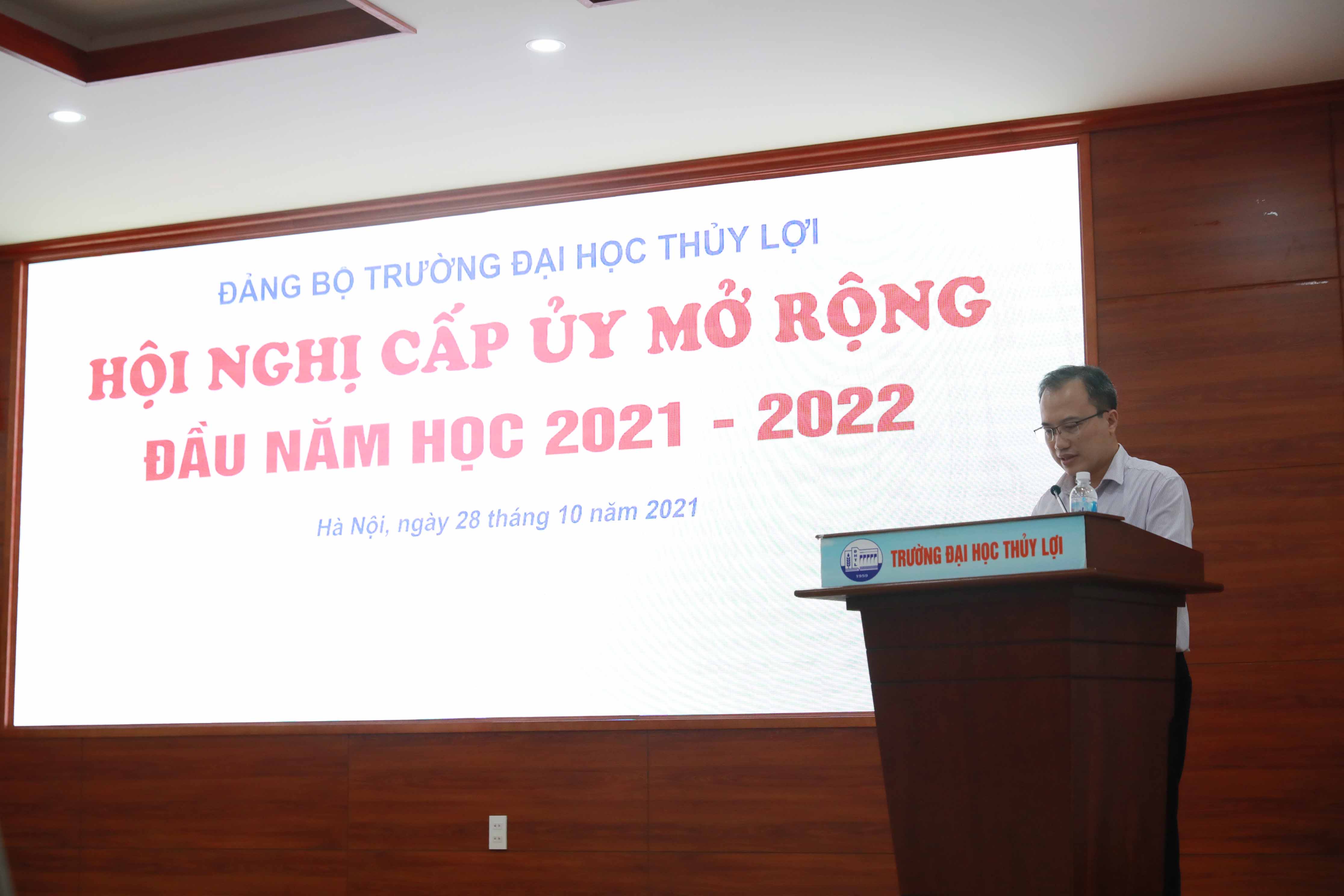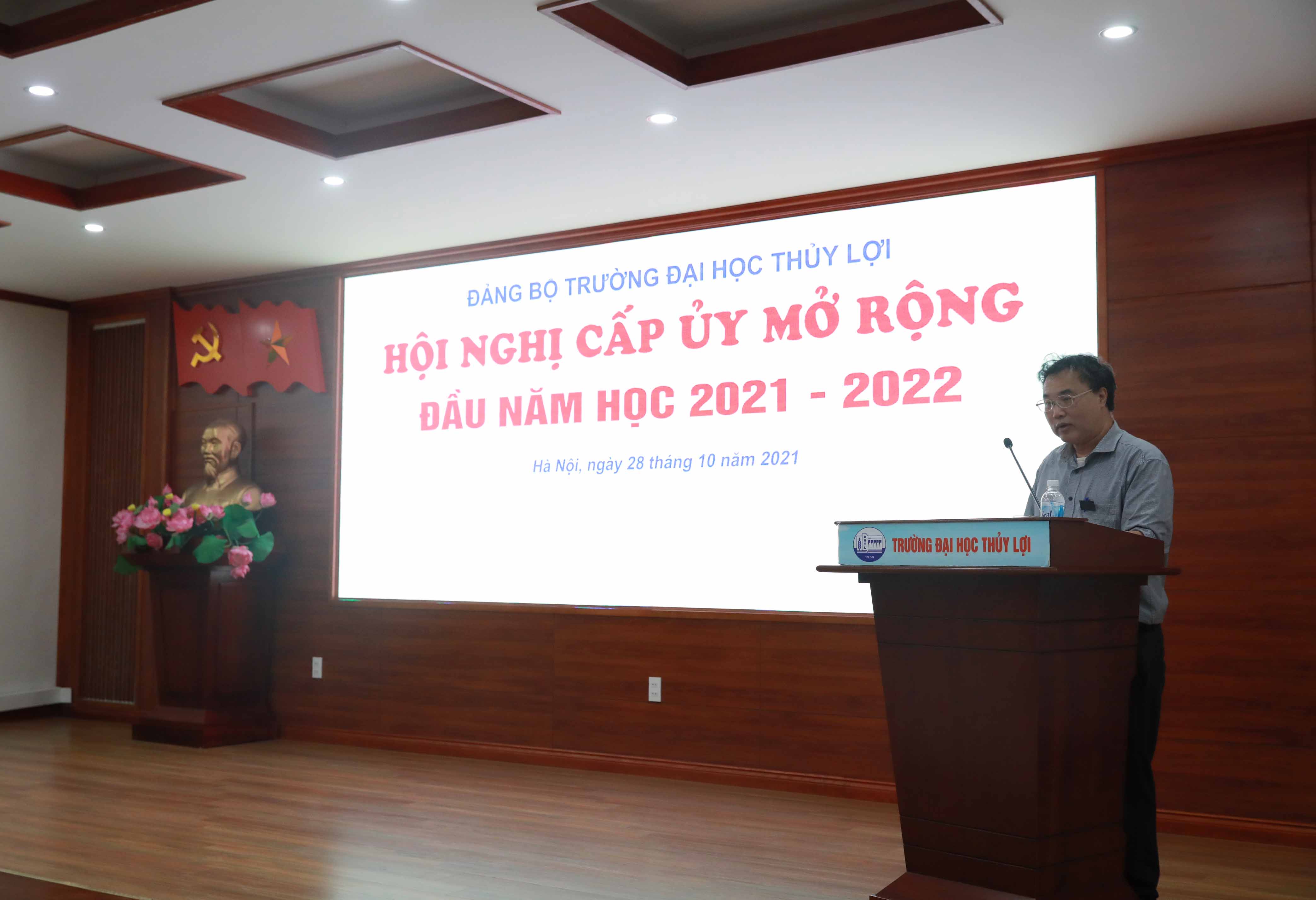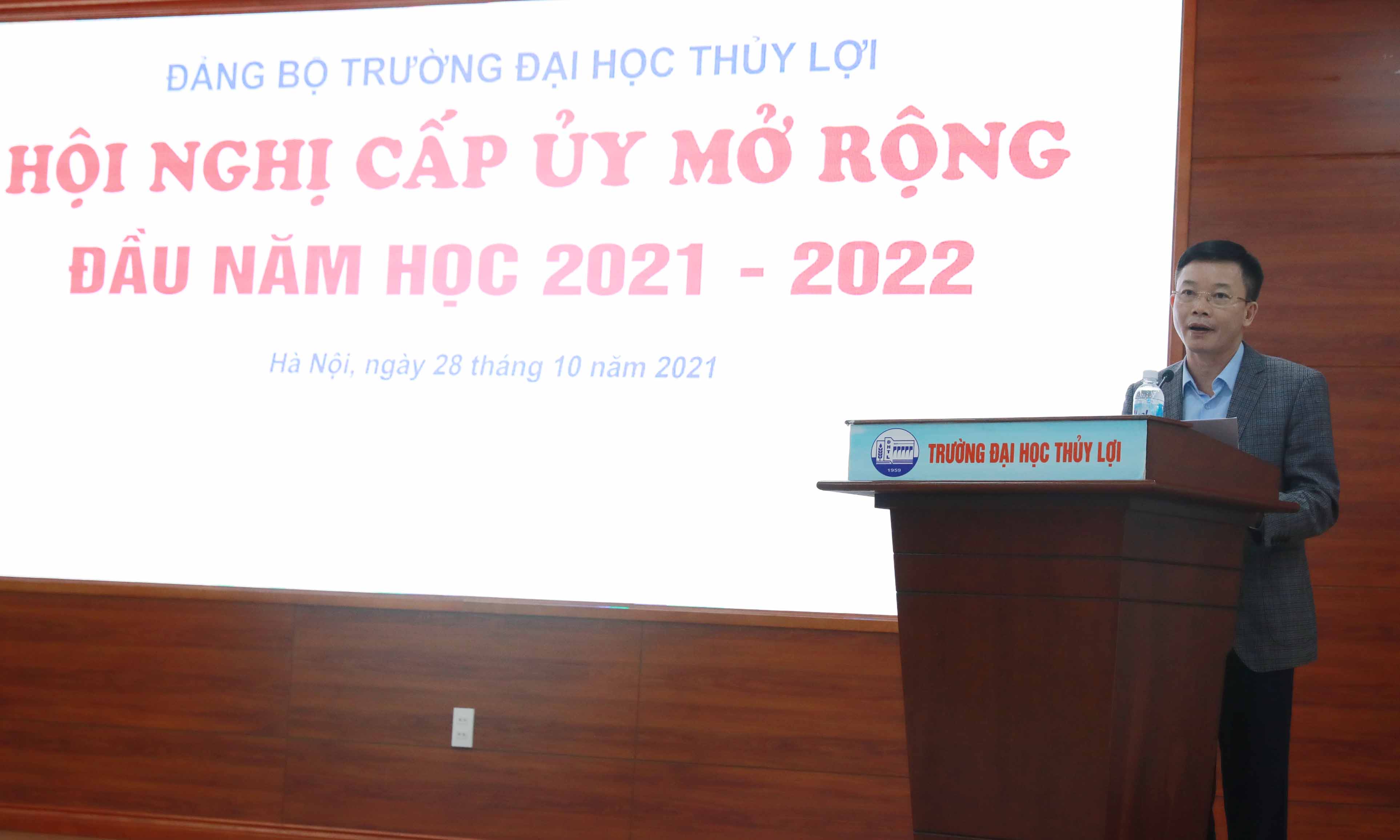 Tại hội nghị, GS.TS Trịnh Minh Thụ – Phó bí thư Đảng ủy, Hiệu trưởng cũng đã trình bày Nghị quyết về lãnh đạo thực hiện nhiệm vụ trọng tâm năm học 2021-2022: thực hiện Chỉ thị, Nghị quyết của Đảng, các cấp; pháp luật của Nhà nước, đặc biệt là Nghị quyết của Đại hội đại biểu toàn quốc lần thứ XIII của Đảng, Nghị quyết số 29 về đổi mới toàn diện giáo dục và đào tạo, Luật sửa đổi và bổ sung một số điều của Luật giáo dục đại học và Nghị quyết của Đảng bộ Trường Đại học Thủy lợi khóa 28 nhiệm kỳ 2020-2025…