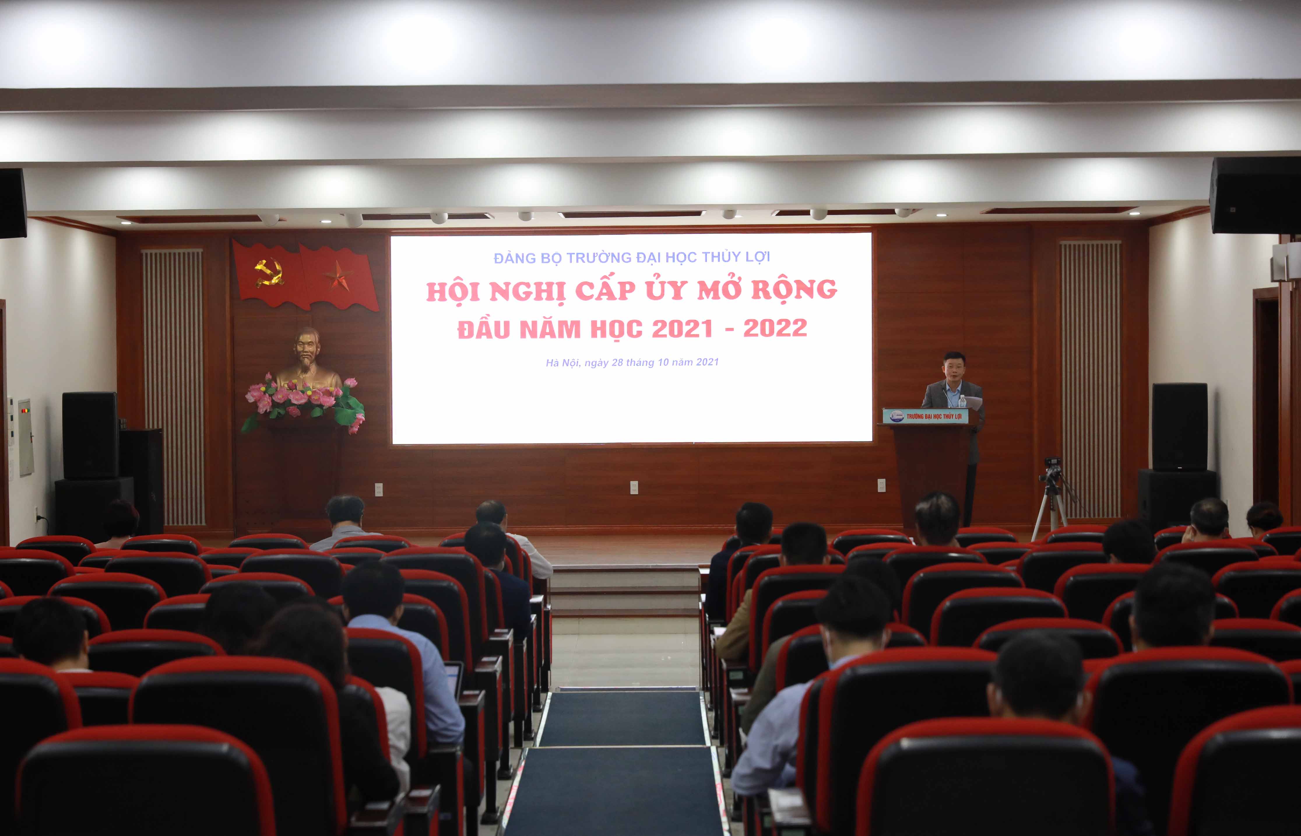 Tại hội nghị, GS.TS Trịnh Minh Thụ – Phó bí thư Đảng ủy, Hiệu trưởng cũng đã trình bày Nghị quyết về lãnh đạo thực hiện nhiệm vụ trọng tâm năm học 2021-2022: thực hiện Chỉ thị, Nghị quyết của Đảng, các cấp; pháp luật của Nhà nước, đặc biệt là Nghị quyết của Đại hội đại biểu toàn quốc lần thứ XIII của Đảng, Nghị quyết số 29 về đổi mới toàn diện giáo dục và đào tạo, Luật sửa đổi và bổ sung một số điều của Luật giáo dục đại học và Nghị quyết của Đảng bộ Trường Đại học Thủy lợi khóa 28 nhiệm kỳ 2020-2025…