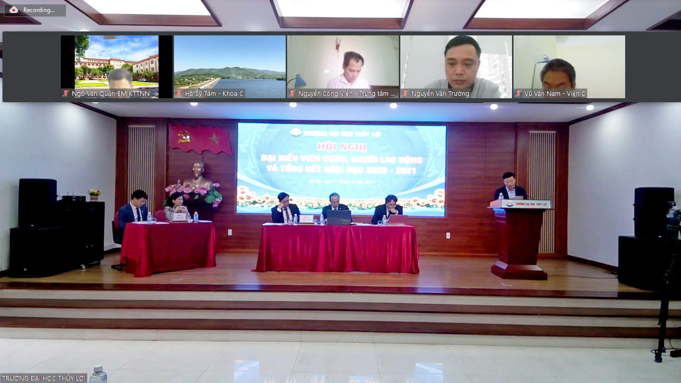 Tham dự Hội nghị có GS.TS Nguyễn Quang Kim, Bí thư Đảng ủy, Chủ tịch Hội đồng trường; GS.TS Trịnh Minh Thụ, Hiệu trưởng; các thầy trong Ban Giám hiệu, Hội đồng trường, Công đoàn, Đoàn thanh niên và khoảng 250 đại biểu đại diện các đơn vị trong toàn trường. Hội nghị tổ chức kết hợp hình thức trực tiếp tại Hội trường T35 và trực tuyến trên nền tảng Zoom Cloud Mettings.