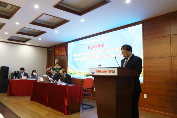 GS.TS Trịnh Minh Thụ, Hiệu trưởng phát biểu tại Hội nghị đại biểu viên chức, người lao động Trường Đại học Thủy lợi năm học 2020-2021