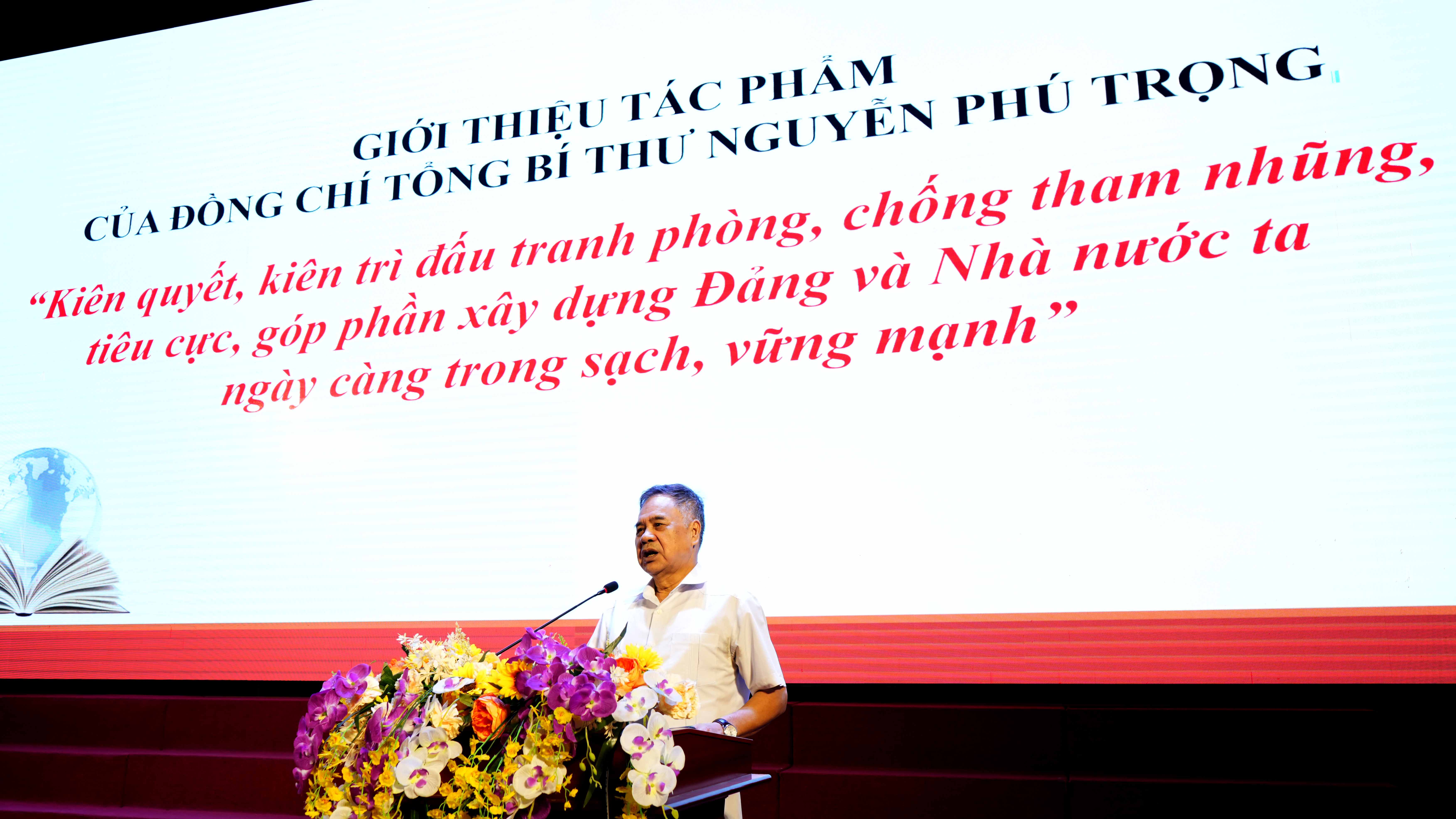 Hội nghị đã lắng nghe PGS.TS Nguyễn Viết Thông – Nguyên Tổng thư ký Hội đồng lý luận Trung ương giới thiệu về quá trình biên tập, những nội dung cơ bản, cốt lõi của cuốn sách “Kiên quyết, kiên trì đấu tranh phòng, chống tham nhũng, tiêu cực, góp phần xây dựng Đảng và Nhà nước ta ngày càng trong sạch, vững mạnh” của Tổng Bí thư Nguyễn Phú Trọng.