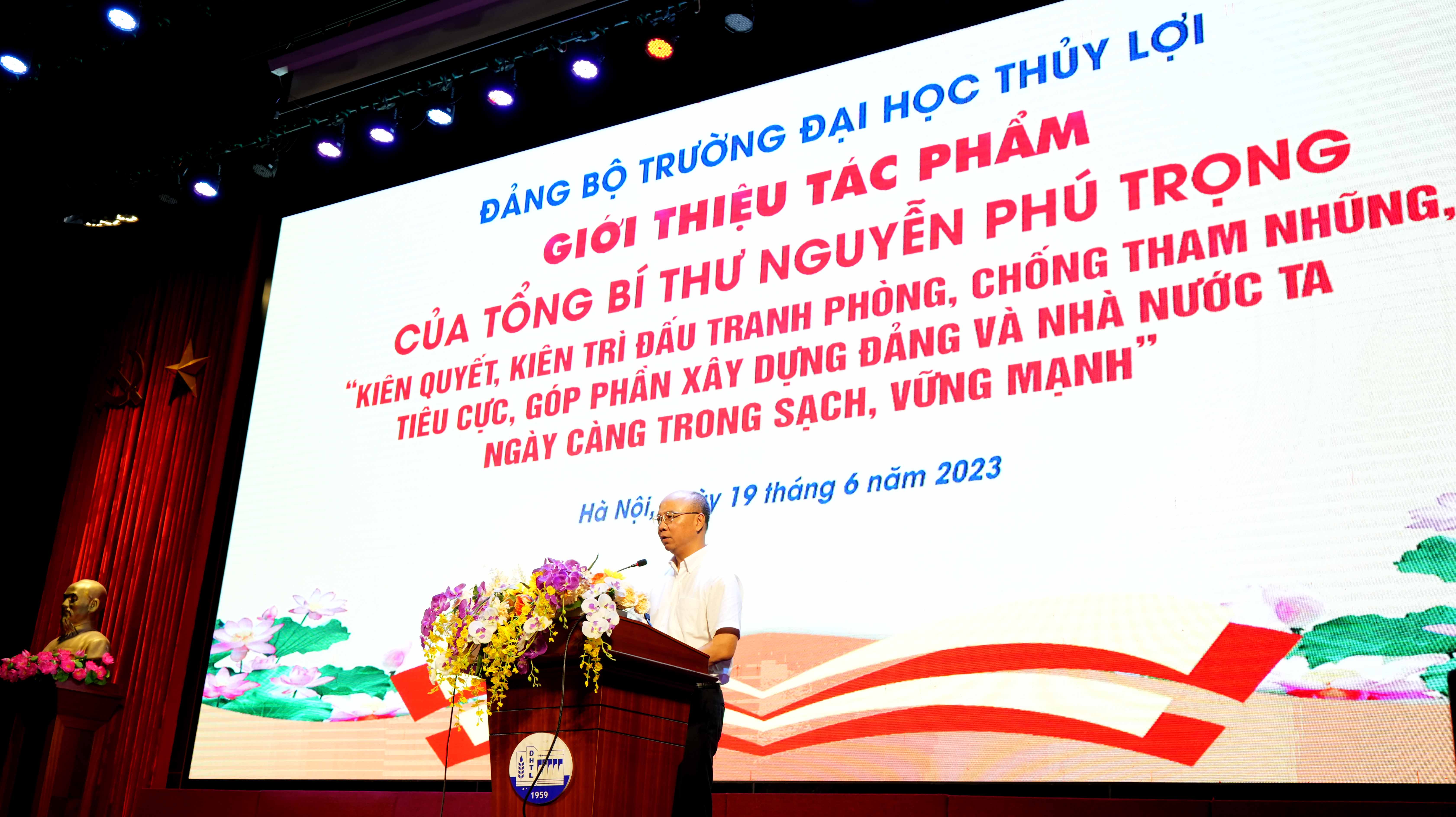 Phát biểu tại hội nghị, PGS.TS Nguyễn Hữu Huế – Bí thư Đảng ủy – Chủ tịch HĐT khẳng định: Việc quán triệt tác phẩm của Tổng Bí thư tại hội nghị lần này có ý nghĩa quan trọng, góp phần nâng cao ý thức, trách nhiệm, quyết tâm của cấp ủy, tổ chức Đảng các cấp, cán bộ, đảng viên trong công tác phòng, chống tham nhũng, tiêu cực; đấu tranh phòng, chống mọi biểu hiện suy thoái về tư tưởng, chính trị, đạo đức, lối sống, “tự diễn biến”, “tự chuyển hóa”, xây dựng Đảng và hệ thống chính trị trong sạch, vững mạnh.