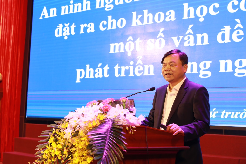 Ông Nguyễn Hoàng Hiệp – Thứ trưởng Bộ Nông nghiệp và PTNT báo cáo về an ninh nguồn nước và những thách thức mới đặt ra cho khoa học công nghệ giải quyết một số vấn đề cốt lõi đến phát triển nông nghiệp