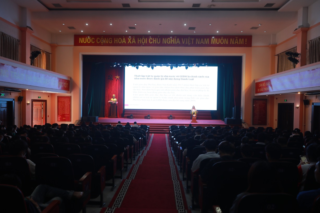 Tại Hội nghị, các đoàn viên, sinh viên được tuyên truyền phổ biến một số điểm cơ bản trong Luật sửa đổi, bổ sung một số điều của Luật Giáo dục đại học (Luật số 34/2018/QH14 ngày 19/11/2018), những vấn đề cốt lõi trong giáo dục đại học, quyền và nghĩa vụ của người học…