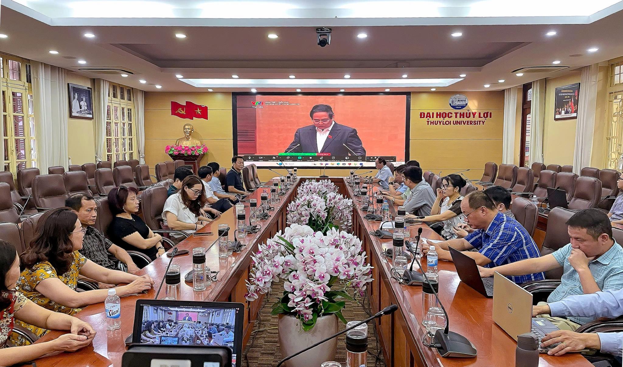 Tại điểm cầu Trường Đại học Thủy lợi có GS.TS Nguyễn Trung Việt – Phó Bí thư Đảng ủy, Hiệu trưởng cùng các đồng chí trong Ban Chấp hành Đảng bộ, Đảng ủy bộ phận và chi ủy các chi bộ và các đồng chí đảng viên đã tham dự Hội nghị.