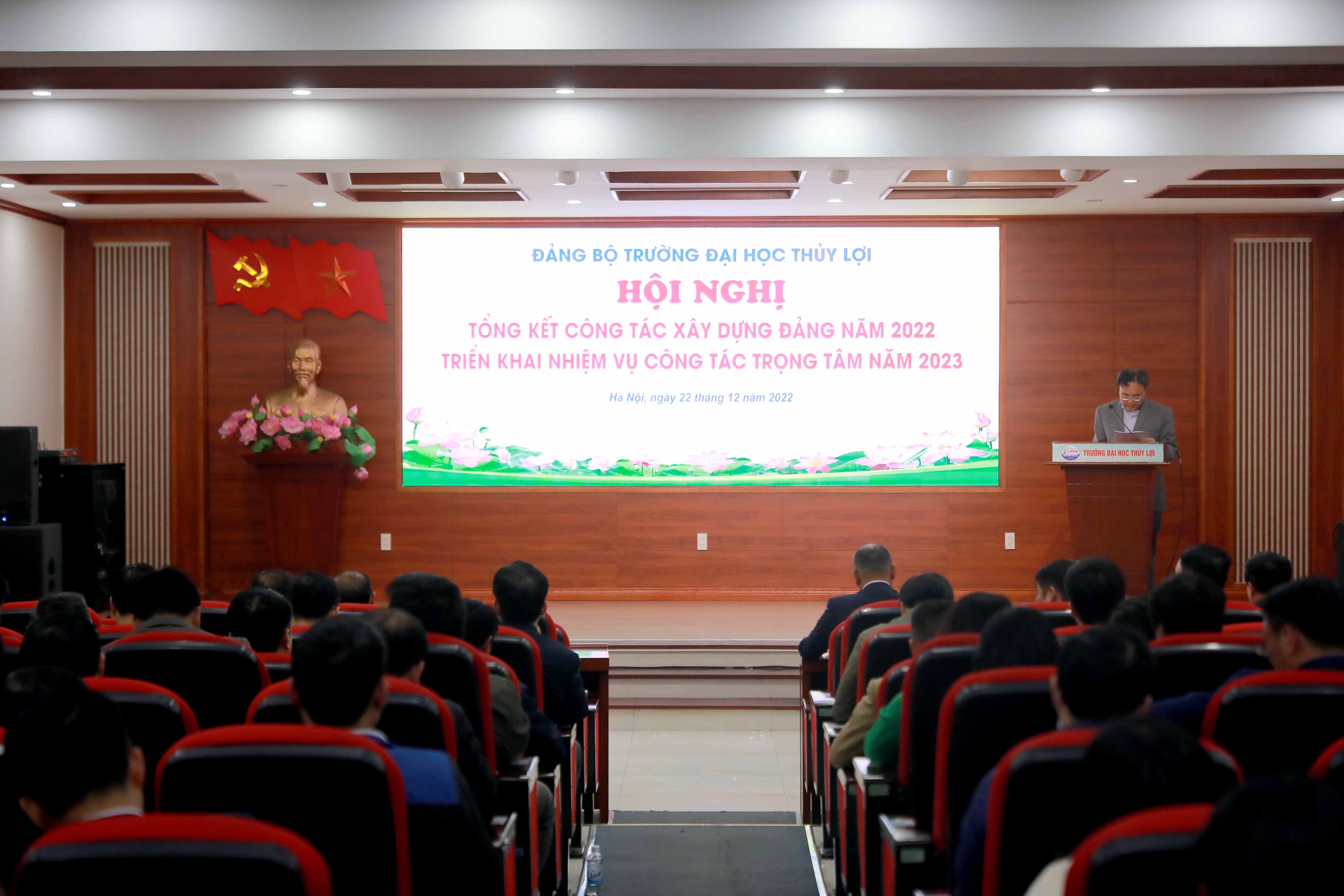 PGS.TS Nguyễn Cảnh Thái – Phó Bí thư Đảng ủy, Phó Hiệu trưởng trình bày báo cáo Tổng kết công tác xây dựng Đảng năm 2022, triển khai nhiệm vụ công tác trọng tâm năm 2023