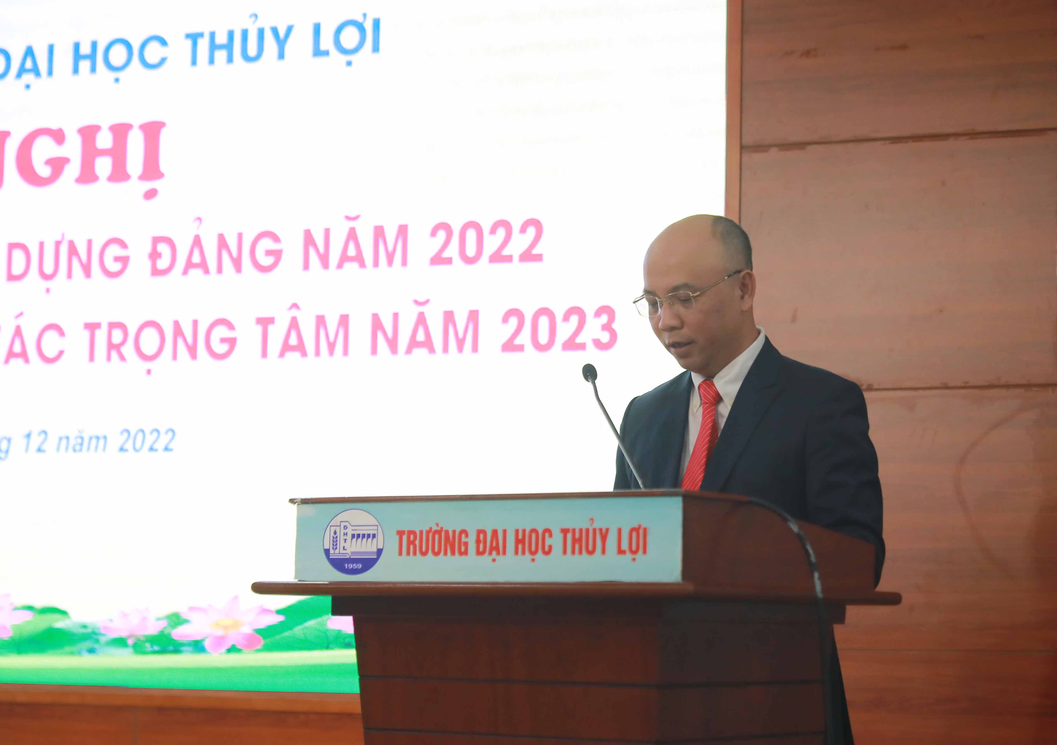 PGS.TS Nguyễn Cảnh Thái – Phó Bí thư Đảng ủy, Phó Hiệu trưởng trình bày báo cáo Tổng kết công tác xây dựng Đảng năm 2022, triển khai nhiệm vụ công tác trọng tâm năm 2023