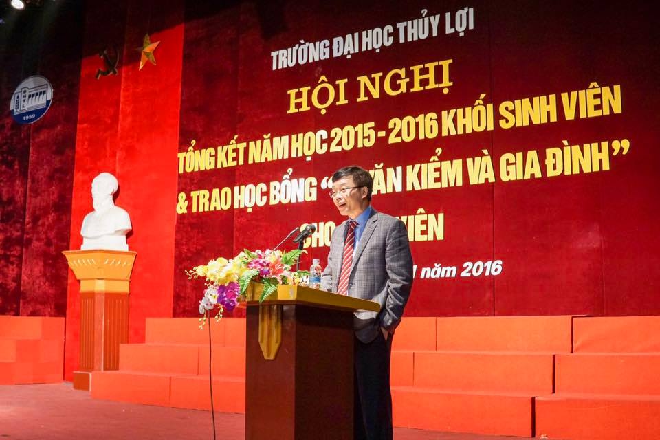 Phát biểu tại Hội nghị, GS. TS Nguyễn Quang Kim – Bí thư Đảng ủy – Hiệu trưởng Nhà trường biểu dương những thành tích của các bạn sinh viên đã đạt được trong năm vừa qua; nhấn mạnh về vai trò của mỗi cán bộ, giảng viên, sinh viên… trong việc nâng cao chất lượng dạy và học. Giáo sư cũng gửi lời cảm ơn sâu sắc đến đại diện quỹ học bổng “Lê Văn Kiểm và gia đình” đã luôn đồng hành với Nhà trường, với sinh viên. Hy vọng năm học 2016 – 2017, thầy và trò Trường Đại học Thủy lợi sẽ gặt hái thêm được nhiều thành công hơn nữa trong công tác giảng dạy và đào tạo.