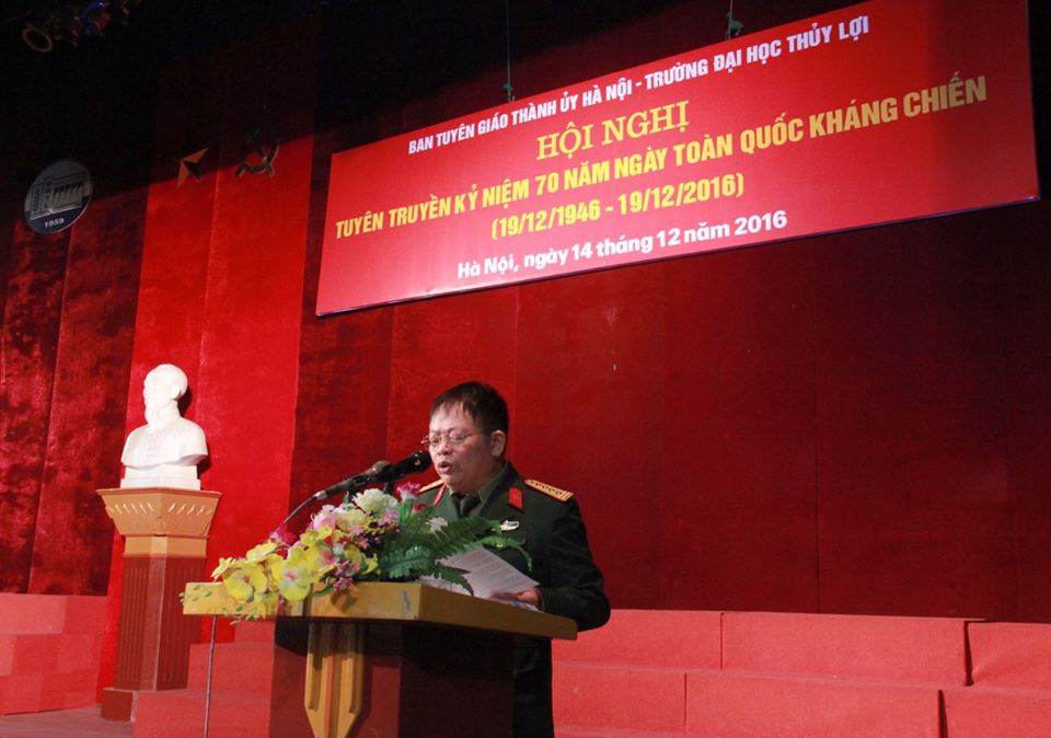 Tại hội nghị, toàn thể Đảng viên, cán bộ, giảng viên, sinh viên trong Nhà trường được xem những thước phim tư liệu lịch sử về những ngày tháng hào hùng của dân tộc mang tên “Hà Nội những ngày mùa đông năm 1946”. Đại tá Lê Ngọc Đỉnh – Báo cáo viên Trung ương Hội Cựu chiến binh Việt Nam đã giới thiệu khái quát lại tình hình lịch sử dẫn đến chủ trường toàn quốc kháng chiến.