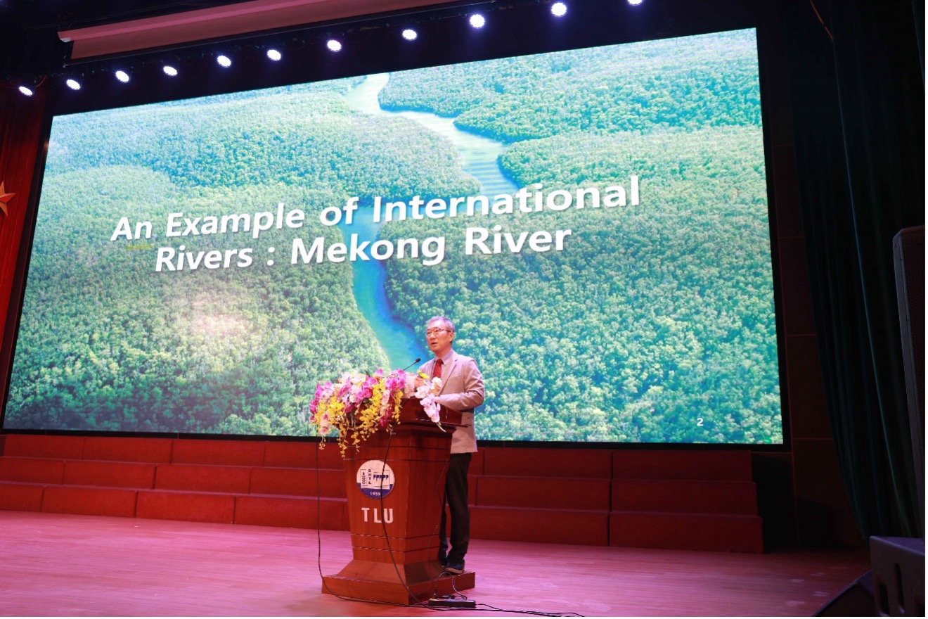 Giáo sư Park cũng nói về vai trò của Luật Quốc tế trong quản lý các dòng sông quốc tế, đề cập đến Công ước 1997 về Luật sử dụng không phải điều hướng của các dòng sông quốc tế. Báo cáo viên đã diễn giải thực tiễn trên con sông Mekong – một trong những hệ thống sông lớn nhất thế giới, chảy qua các nước Trung Quốc, Lào, Myanmar, Thái Lan, Campuchia và Việt Nam cùng việc xây dựng Ủy hội sông Mekong trong thực hiện các chức năng chủ chốt về quản lý lưu vực sông vào năm 2030…