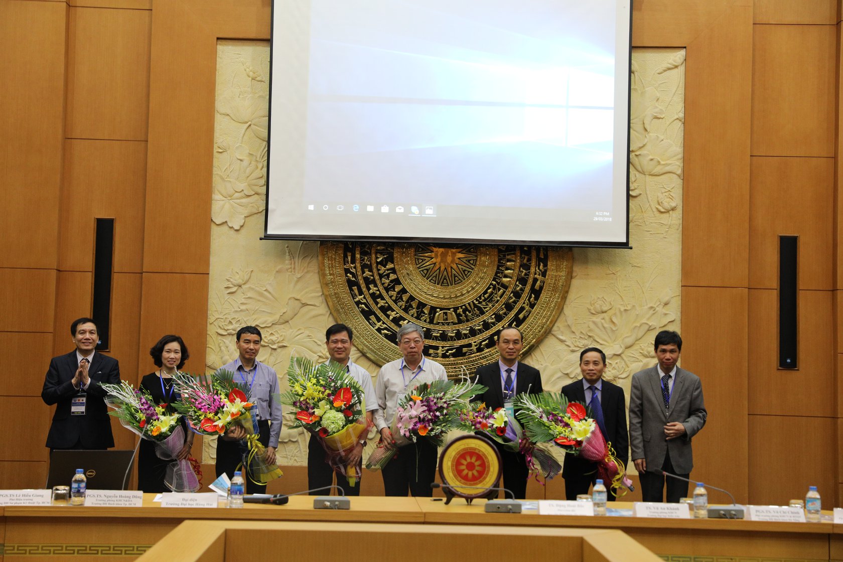 GS. TS Trịnh Minh Thụ – Hiệu trưởng (thứ ba từ phải qua) nhận hoa chúc mừng của CLB