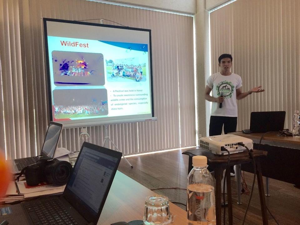 Phạm Văn Mạnh thuyết trình về CLB FGF và Nature Voice Up event