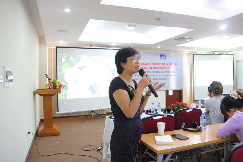 Trong khuôn khổ buổi hội thảo đã diễn ra nhiều hoạt động báo cáo, trao đổi và  thảo luận. Mở đầu là báo cáo tổng kết kết quả thực hiện dự án của PGS.TS Phạm Thị Hương Lan, trình bày tổng quan về những thách thức chính trên lưu vực sông Hồng, xu thế biến đổi khí hậu cùng với việc đưa ra những đánh giá về tác động của những biến đổi đó đối với sản xuất nông nghiệp. Tiếp theo là phần báo cáo về hiện trạng ảnh hưởng của biến đổi khí hậu đến năng suất lúa và một số giải pháp khắc phục cho vùng Đồng bằng sông Hồng của TS.Chu Anh Tiệp – Học viện Nông nghiệp Việt Nam. Trong đó, TS đã phân tích những yếu tố khí hậu biến đổi ảnh hưởng đến cây trồng, trình bày phương pháp tính dự báo về ảnh hưởng đến năng suất lúa, và đưa ra những kiến nghị về thay đổi hệ thống trồng trọt. Các ý kiến đã được lắng nghe và đưa ra thảo luận nhằm tìm ra giải pháp tốt nhất đề ứng phó với BĐKH trong tương lai. Trình bày báo cáo kết thúc dự án nghiên cứu là TS. Đào Trọng Tứ, với đánh giá và kiến nghị về các vấn đề thể chế trong thích ứng BĐKH, TS đã đưa ra những đánh giá khách quan, xác thực, trên cơ sở đó, các nhà khoa học và nhà chuyên môn đã đưa ra những ý kiến trao đổi thảo luận thực tế, hữu ích.