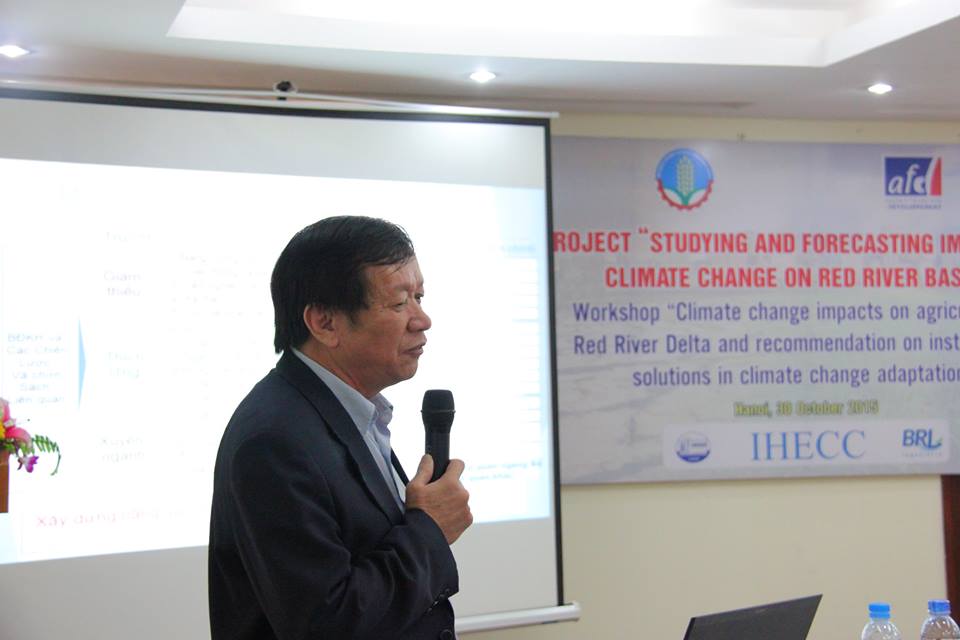 Tại Việt Nam, biến đổi khí hậu đang diễn biến ngày càng phức tạp và khó lường, ảnh hưởng lớn đến sản xuất nông nghiệp, đặc biệt là lưu vực đồng bằng sông Hồng. Nhận thấy tầm quan trọng của việc cần nhanh chóng có các giải pháp thích ứng với biến đổi khí hậu, vào sáng ngày 30-10, tại phòng Hội thảo nhà K1, Bộ Nông nghiệp và PTNT phối hợp cùng trường Đại học Thủy Lợi – trường đại học đầu ngành trong lĩnh vực thủy lợi, thủy điện và tài nguyên nước, với sự tài trợ của cơ quan AFD (Pháp) đã tổ chức buổi hội thảo khoa học: “Đánh giá tác động của BĐKH đến nông nghiệp và đề xuất các giải pháp về thể chế trong thích ứng với BĐKH vùng đồng bằng sông Hồng”.