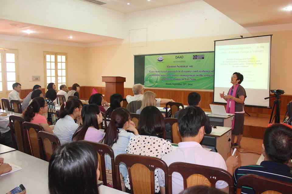 Hội thảo đã được tiếp cận với những đề tài của các chuyên gia, các nhà khoa học trong và ngoài nước trình bày các tham luận có liên quan. GS Holm Uibring đến từ Đại học kỹ thuật Dresden (TU Dresden) nêu vấn đề về nghiên cứu việc sử dụng đất nhằm xử lý việc phân loại đất và các đặc thù liên quan đến sử dụng và quản lý đất rừng. TS Teherani Kroennner (Đại học Humnold – Đức) cùng với PGS.TS Đặng Tùng Hoa (ĐH Thủy Lợi – Việt Nam) lại đề cập đến sinh thái nhân văn và vấn đề giới nêu bật khung lý thuyết áp dụng trong nghiên cứu tài nguyên thiên nhiên và văn hóa trong bối cảnh biến đổi khí hậu …