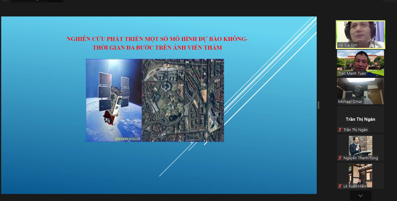 Tương tự, ngày 09/10/2021 nhóm Trí tuệ nhân tạo cho biến đổi khí hậu và điều khiển hệ thống (Artificial Intelligence for Tackling Climate Change and Controlling System – AICOST) đã trình bày 02 bài tham luận về: (1) Nghiên cứu phát triển một số mô hình dự báo không – thời gian đa bước trên ảnh viễn thám (do Ths. Hà Văn Sơn – Trường Đại học Công nghiệp Việt Hung trình bày); (2) Deep Learning for Precipitation from RADAR images (do ông Michael Omar trình bày). Sau khi nghe các báo cáo các đại biểu đã có trao đổi và đều đưa ra ý kiến mô hình có thể áp dụng vào việc phân đoạn ảnh, từ đó xác định được các phân vùng ảnh đồng nhất với nhau, xác định được các khu vực có thể mưa nhiều hay mưa ít từ số liệu vệ tinh hoặc dữ liệu radar.