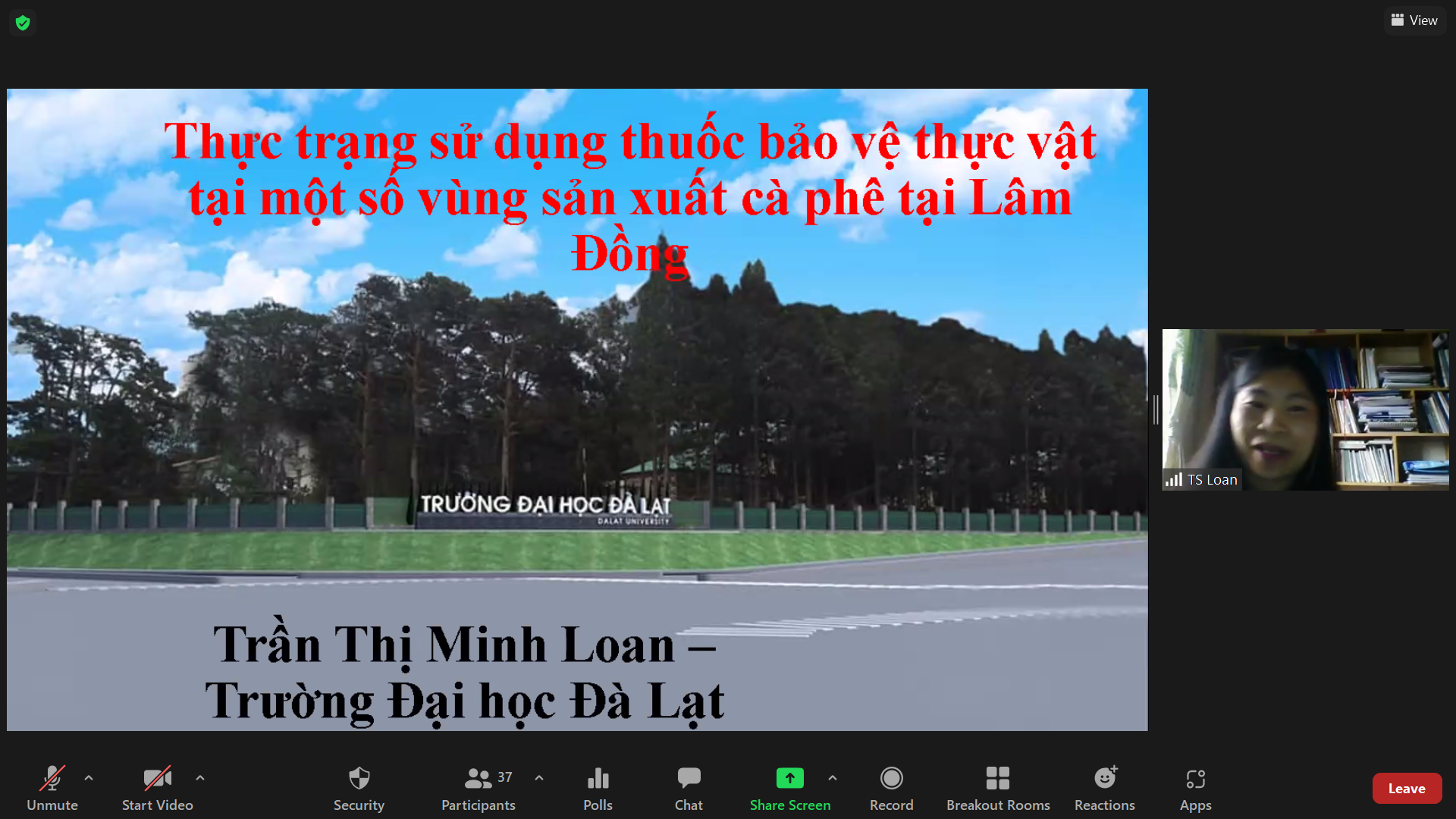 Ngày 03/9/2021 nhóm Nghiên cứu các hợp chất hữu cơ (Research of Organic Matter – ROOM) đã tổ chức thành công Hội thảo với chủ đề “Ô nhiễm một số chất hữu cơ độc, bền trong môi trường và nghiên cứu xử lý bằng phương pháp sinh học”. Hội thảo đã trình bày 03 bài tham luận về: (1) Thực trạng sử dụng thuốc bảo vệ thực vật tại một số vùng sản xuất cà phê tại Lâm Đồng (do TS Trần Thị Minh Loan trình bày); (2) Vai trò của enzyme trong phân hủy chất hữu cơ độc và ứng dụng với Aflatoxin (do TS. Trịnh Đình Khá trình bày); (3) Ứng dụng màng sinh học từ vi sinh vật trong xử lý chất hữu cơ khó phân hủy (do TS. Lê Thị Nhi Công trình bày).