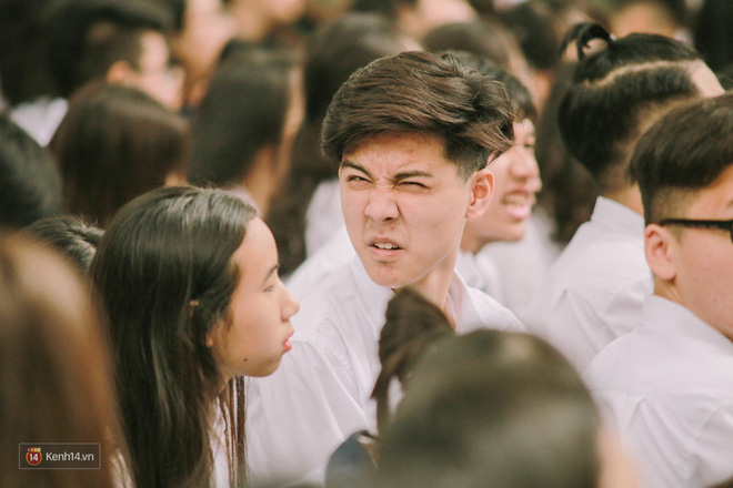 Ngồi cạnh bạn bè nên Hồng Đăng rất thoải mái, cậu bạn đã cho ra đời 1001 biểu cảm hài hước. (Ảnh: Mai Lân)