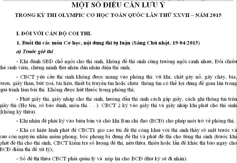 Hướng dẫn cán bộ coi thi Olympic cơ học toàn quốc 2015