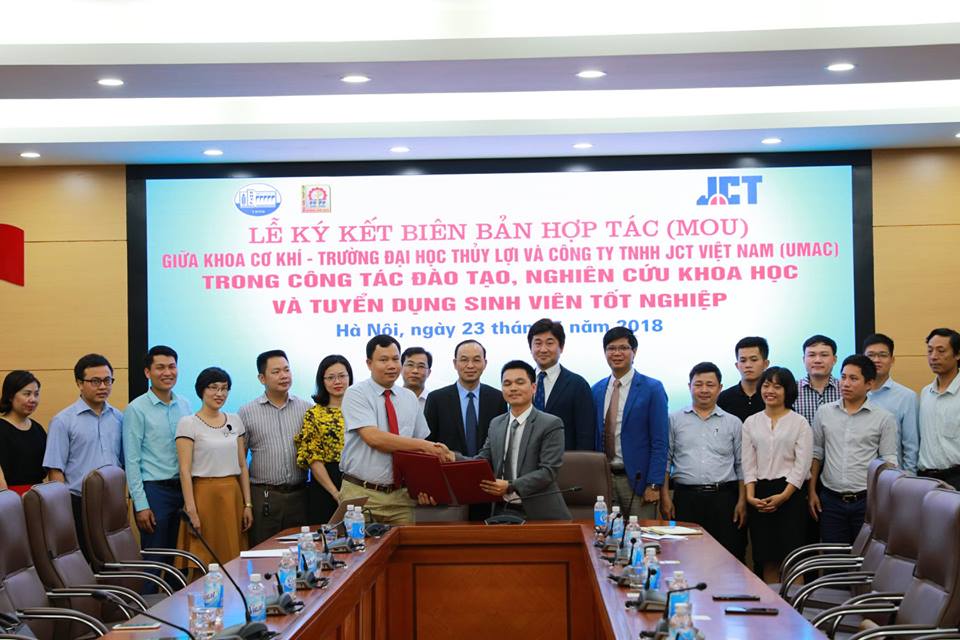 Theo đó, việc hợp tác giữa Công ty TNHH JCT Việt Nam (JCT) với Khoa Cơ khí Trường Đại học Thuỷ lợi nhằm mục đích đẩy mạnh các chương trình hợp tác trong lĩnh vực đào tạo, nghiên cứu khoa học và tuyển dụng sinh viên tốt nghiệp dựa trên căn cứ nhu cầu của hai bên.