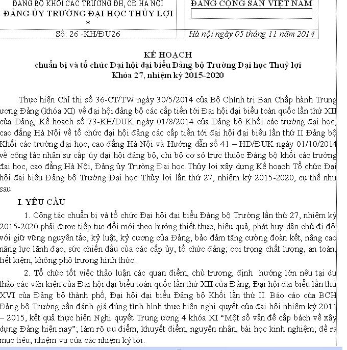 Kế hoạch chi tiết Đại hội Đảng bộ lần thứ 27