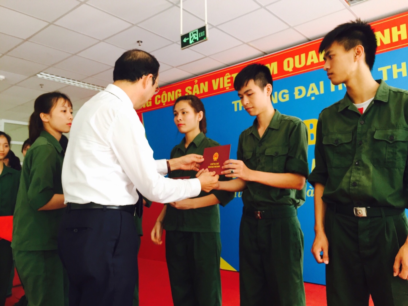 GS. TS Trịnh Minh Thụ – Hiệu trưởng trao chứng nhận GDQP-AN cho sinh viên K59