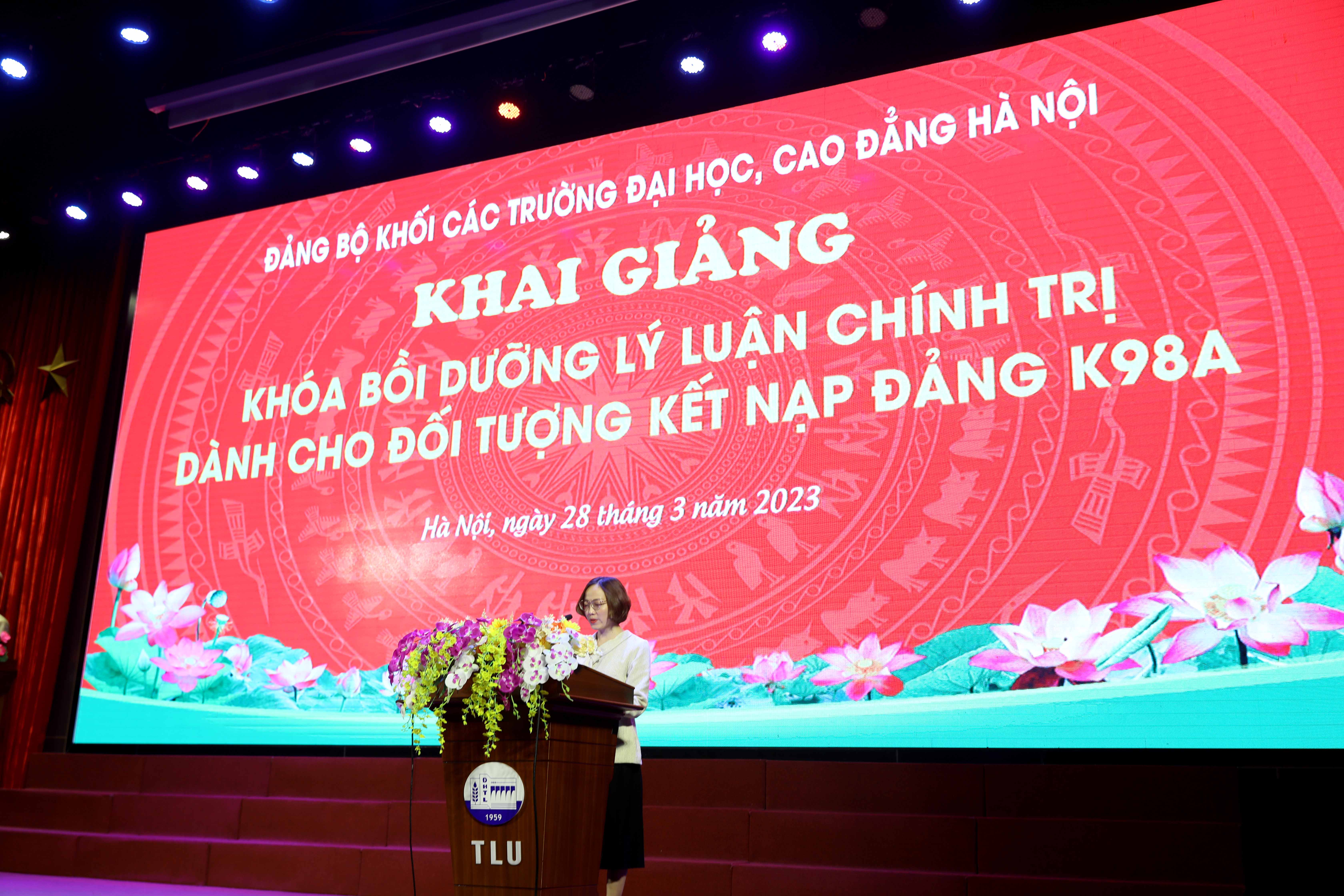 Phát biểu khai giảng, PGS.TS Nguyễn Hữu Huế, Bí thư Đảng ủy, Chủ tịch Hội đồng Trường khẳng định, công tác tạo nguồn và phát triển đảng viên luôn được Đảng ủy khối các trường Đại học, cao đẳng Hà Nội nói chung và đảng bộ các Trường nói riêng đặc biệt quan tâm, coi đây là nhiệm vụ chính trị quan trọng. Việc kết nạp những thanh niên ưu tú vào Đảng không chỉ góp phần “trẻ hóa” đội ngũ đảng viên mà còn tạo động lực để các bạn trẻ phấn đấu, góp phần tạo nguồn nhân lực tương lai có trình độ chuyên môn cao, phẩm chất chính trị vững vàng, đáp ứng yêu cầu xây dựng và bảo vệ Tổ quốc trong thời kỳ công nghiệp hóa – hiện đại hóa.
