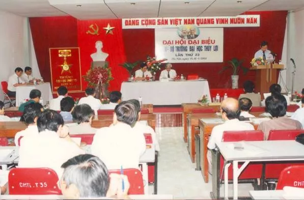 Sáng nay, Đại hội cũng đã nghe đồng chí Lê Văn Chín – Bí thư Đảng ủy Kỹ thuật Tài nguyên nước, Trưởng Khoa kiêm Viện trưởng Viện Kỹ thuật tài nguyên nước báo cáo tham luận với tiêu đề: Tăng cường kết hợp giữa đào tạo và khoa học công nghệ để duy trì và phát triển các ngành truyền thống; đồng chí Đoàn Yên Thế – Bí thư Chi bộ Cơ khí, Trưởng Khoa Cơ khí trình bày tham luận: Mô hình đào tạo nguồn nhân lực ngành Cơ khí định hướng làm việc tại Nhật Bản. Đồng chí Nguyễn Thanh Tùng – Đảng ủy viên, Bí thư Đảng ủy Công nghệ thông tin, Trưởng Khoa Công nghệ thông tin tham luận với tiêu đề: Vai trò Công nghệ thông tin trong đào tạo và nghiên cứu liên ngành thời chuyển đổi số. Đặc biệt, đồng chí Trịnh Minh Thụ, Phó bí thư Đảng ủy, Hiệu trưởng Nhà trường cũng có bài tham luận tại đại hội, chia sẻ về những kết quả đã đạt được của Trường Đại học Thủy lợi trong suốt 60 năm qua và những cơ hội, thách thức trong giáo dục đại học thời gian tới với chủ đề: Phát huy thành quả hơn 60 năm xây dựng và phát triển cùng nhau chung sức đồng lòng đưa Trường Đại học Thuỷ lợi trở thành trường Đại học tiên tiến trong khu vực.