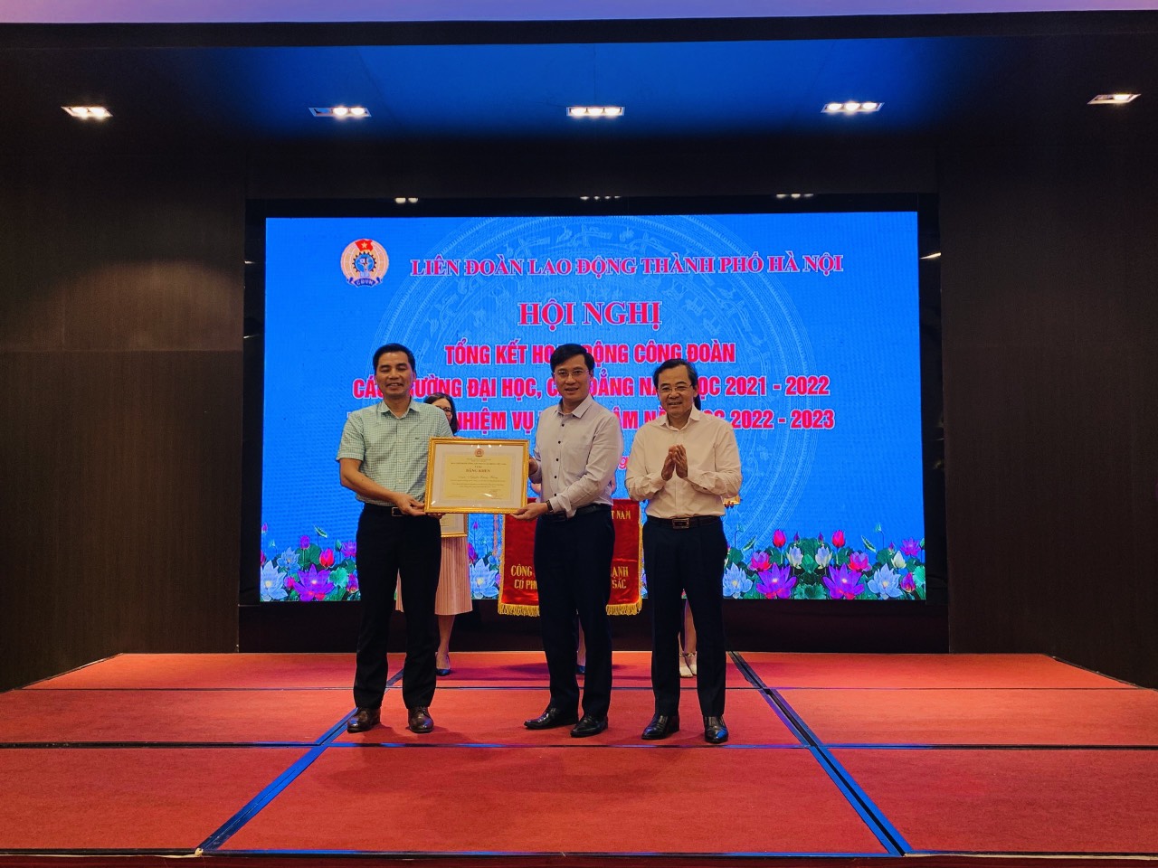 Dịp này, để ghi nhận những thành tích của công đoàn các trường đã đạt được trong năm học 2021-2022, Tổng Liên đoàn Lao động Việt Nam tặng Cờ thi đua cho 1 tập thể Công đoàn  tặng Bằng khen cho 2 tập thể, 1 cá nhân; Liên đoàn Lao động thành phố Hà Nội tặng Cờ thi đua cho 2 tập thể, tặng Bằng khen cho 10 tập thể và 11 cá nhân. Trong đó, Công đoàn Trường Đại học Thủy lợi và cá nhân PGS.TS Nguyễn Lương Bằng – Chủ tịch Công đoàn Trường vinh dự nhận Bằng khen vì có thành tích xuất sắc trong phong trào thi đua lao động giỏi và xây dựng tổ chức công đoàn vững mạnh năm học 2021-2022.