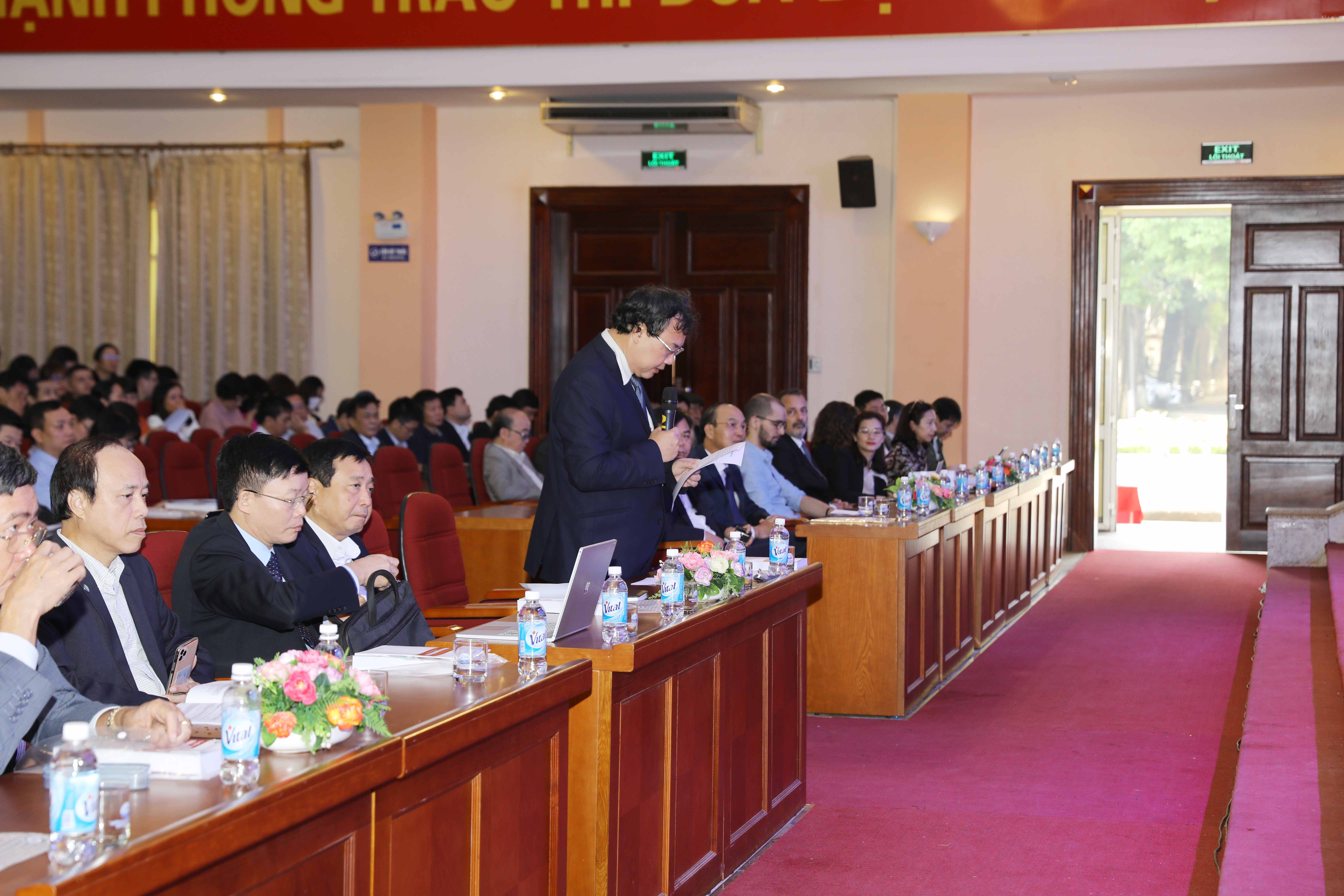 PGS. TS Nguyễn Cảnh Thái – Phó hiệu trưởng điều hành các phần báo cáo tại phiên toàn thể