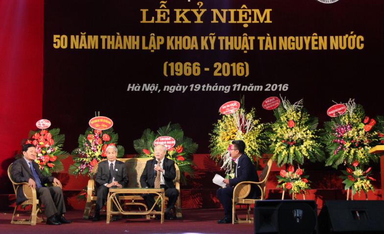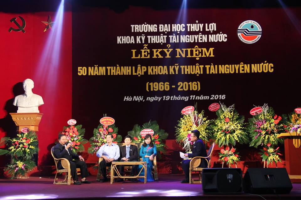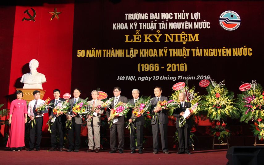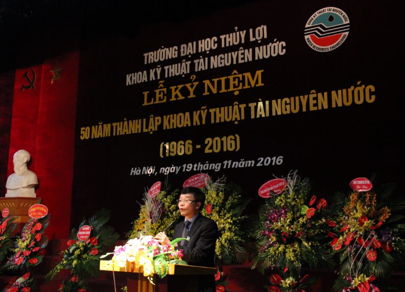 Phát biểu tại buổi lễ, GS.TS Nguyễn Quang Kim- Bí thư Đảng ủy – Hiệu trưởng Nhà trường chúc mừng và ghi nhận những đóng góp của các thế hệ thầy và trò Khoa Kỹ thuật Tài nguyên nước trong suốt nửa thế kỷ qua. Với bề dày truyền thống đó, Nhà trường hy vọng, Khoa sẽ tiếp tục phát huy tốt hơn trong công tác đào tạo và nghiên cứu khoa học, góp phần cho sự phát triển chung của Trường Đại học Thủy lợi, trở thành trường Đại học đầu ngành, đào tạo nguồn nhân lực trình độ cao đáp ứng yêu cầu phát triển ngành Nước và là Trung tâm Khoa học Công nghệ có uy tín về Thủy lợi – Thủy điện, Tài nguyên và Môi trường, Phòng chống và giảm nhẹ thiên tai.