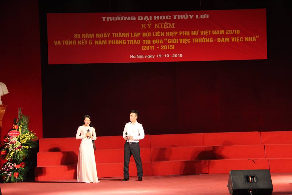 Sau những ca khúc trữ tình ngọt ngào, sâu lắng được hai ca sĩ Minh Đức và Ái Linh đặc biệt dành tặng cho  nữ cán bộ công nhân viên, giảng viên, và sinh viên trường Đại học Thủy Lợi nhân dịp kỉ niệm 85 năm ngày thành lập hội liên hiệp phụ nữ Việt Nam (20/10/1930 – 20/10/2015 ). Th.s Trần Thị Chì  – Trưởng ban nữ công báo cáo tổng kết công tác nữ công năm học 2014- 2015 và tổng kết 5 năm thực hiện phong trào thi đua “ Giỏi việc trường – Đảm việc nhà”.