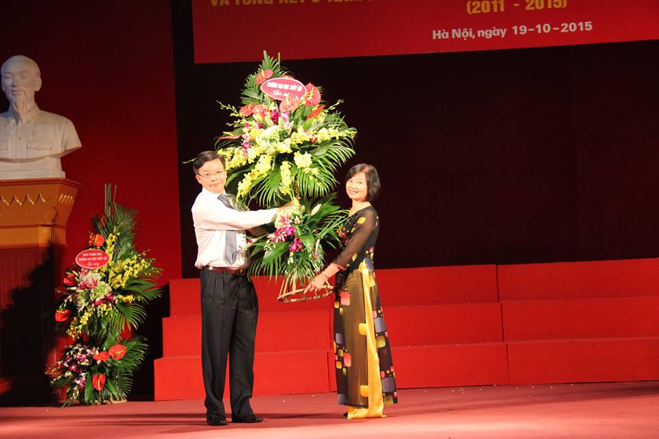 GS.TS Nguyễn Quang Kim – Bí thư Đảng ủy, Hiệu trưởng nhà trường tặng lẵng hoa tươi thắm