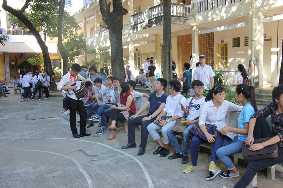 Không khí nhộn nhịp tại cổng trường nơi tập trung rất đông người nhà thí sinh đến làm thủ tục dự thi